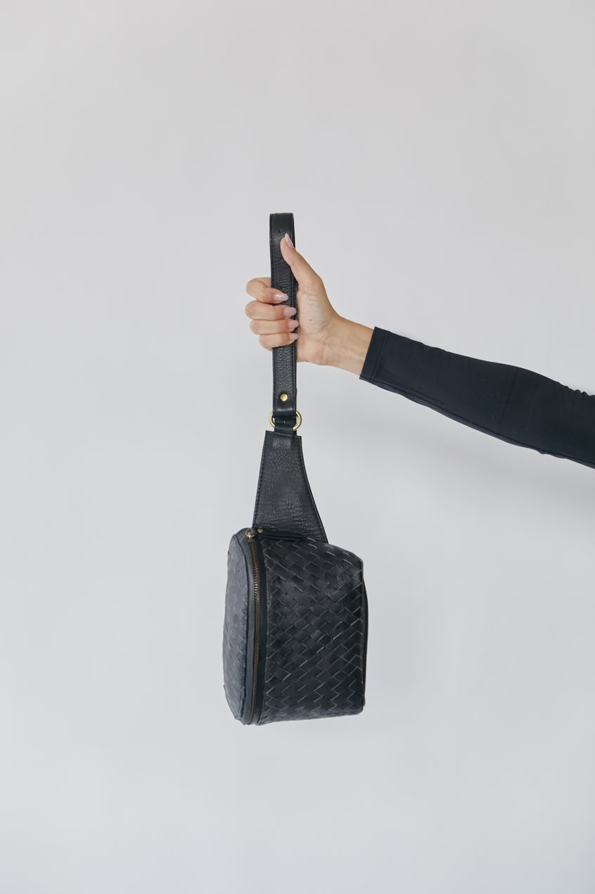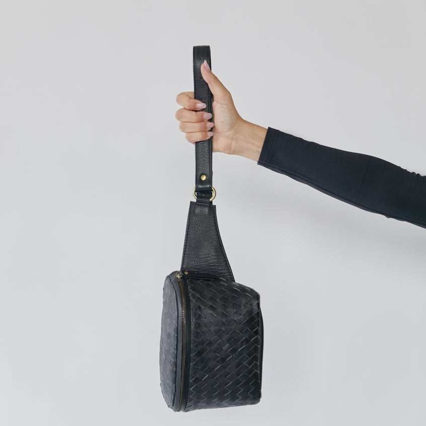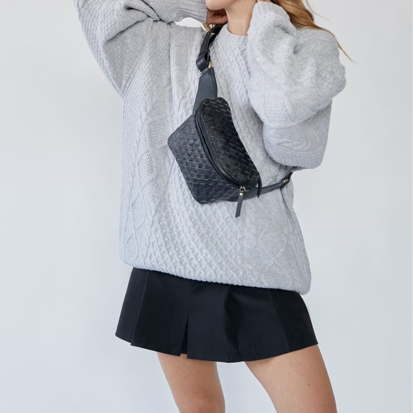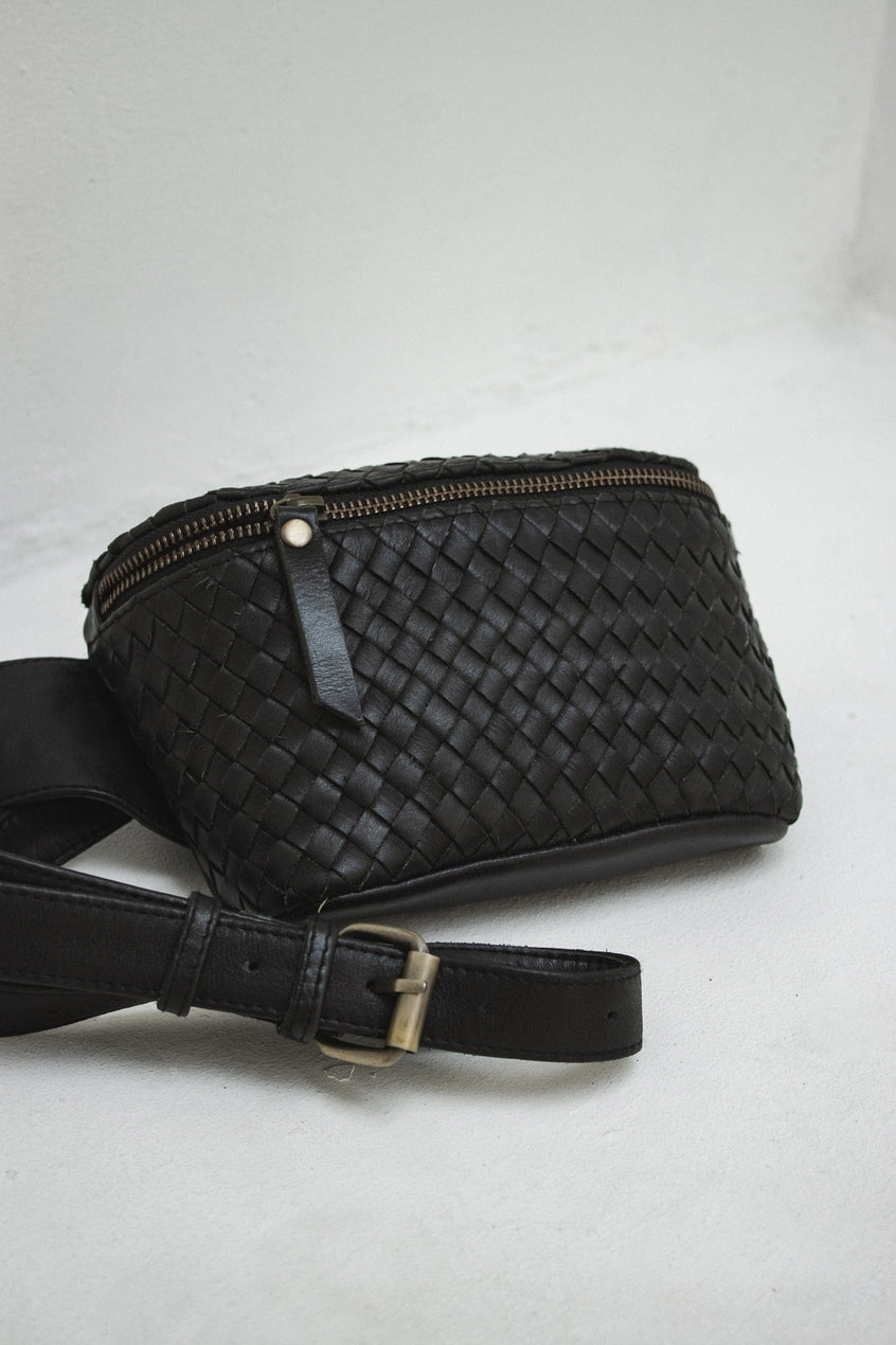Adjustable belt closure strap that allows for wearing around the hip, across the body or over the shoulder