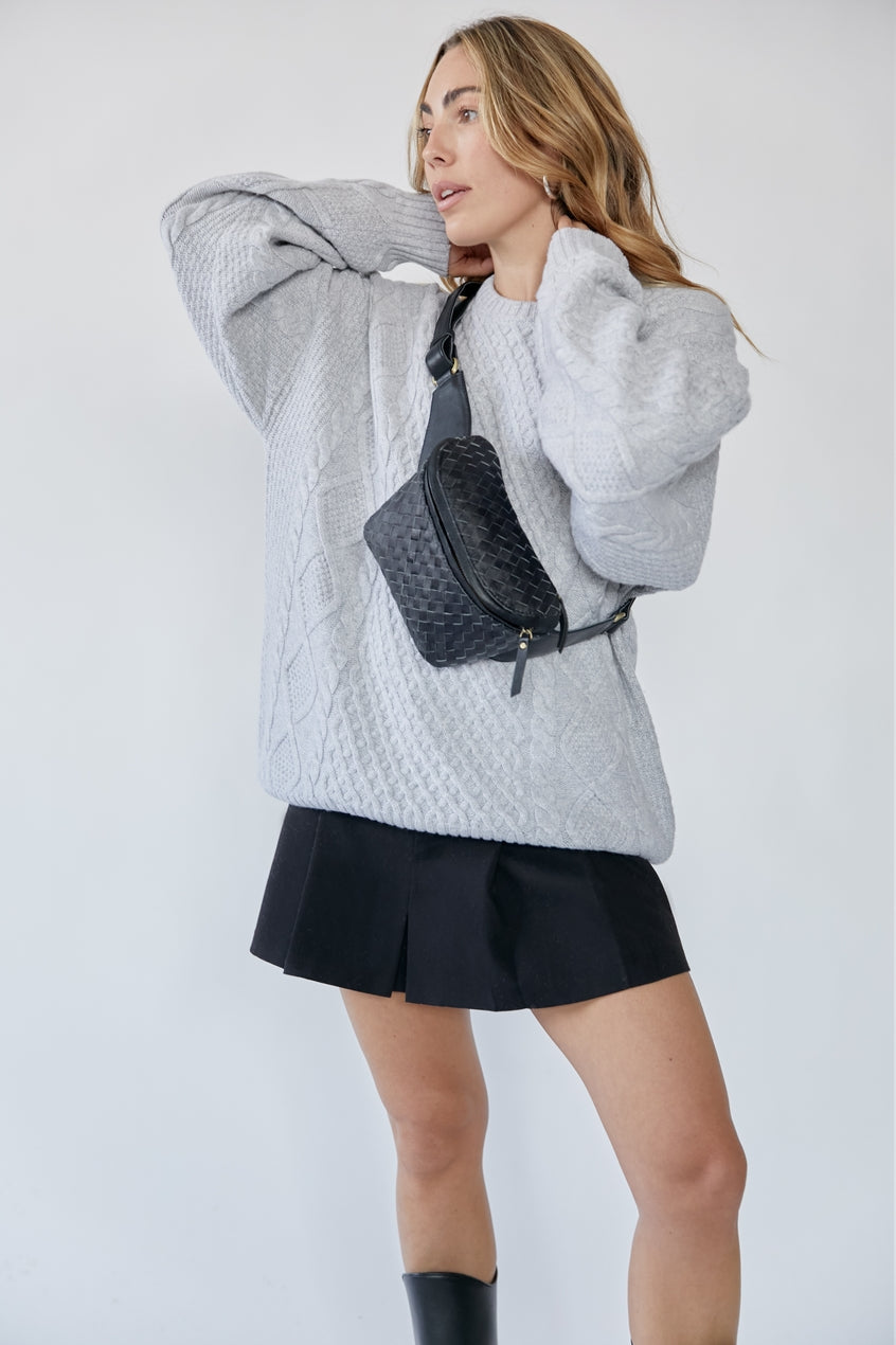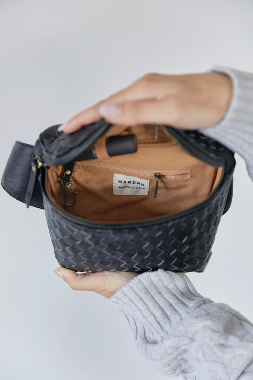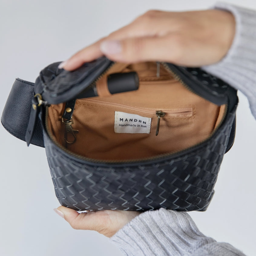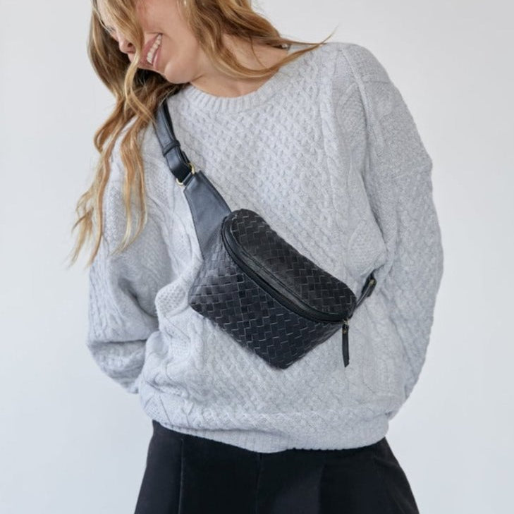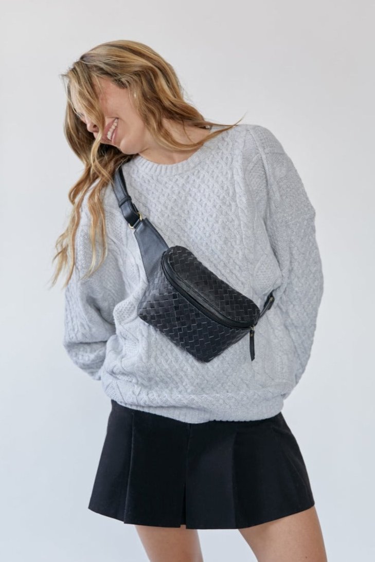 Adjustable belt closure strap that allows for wearing around the hip, across the body or over the shoulder