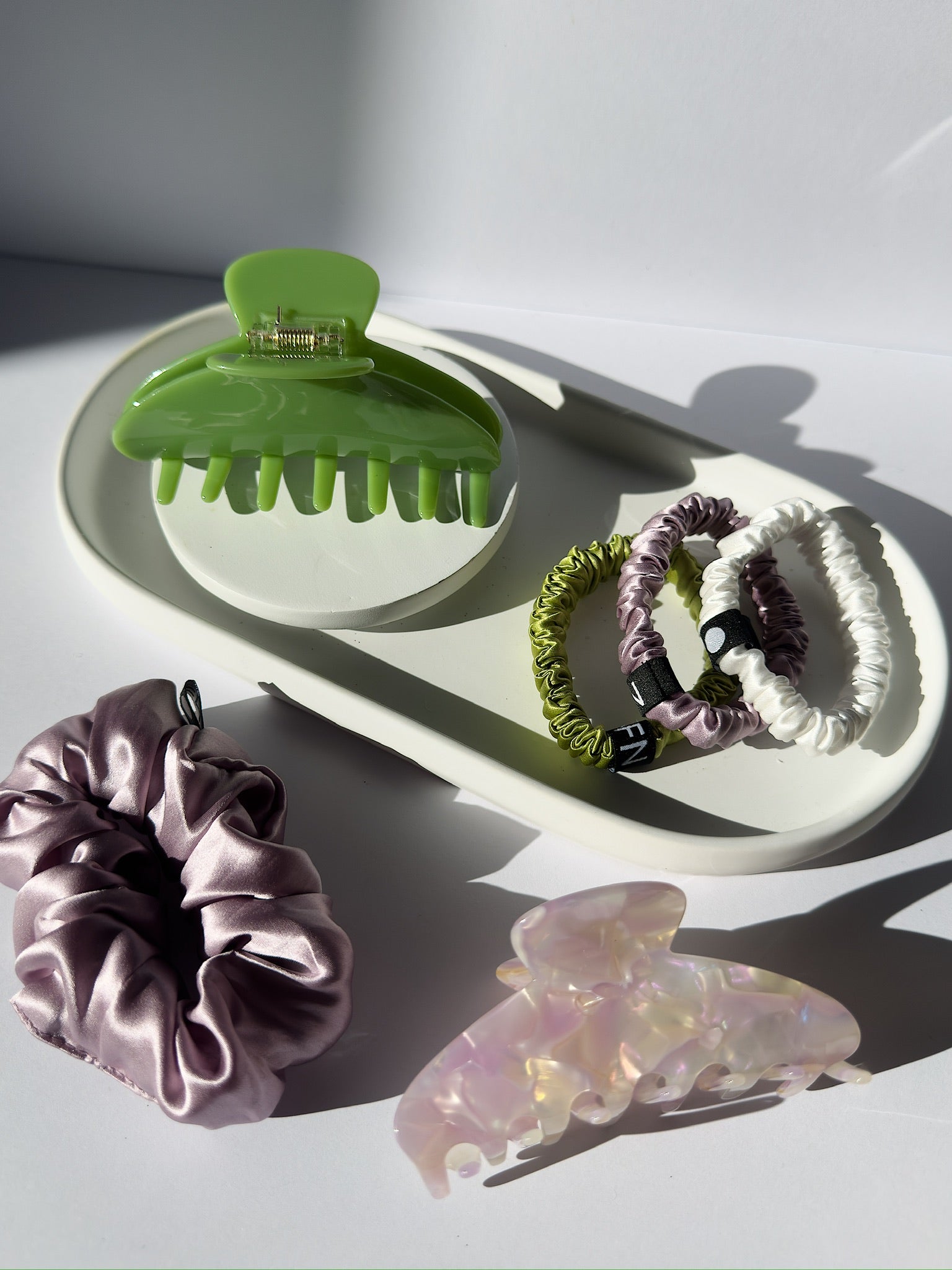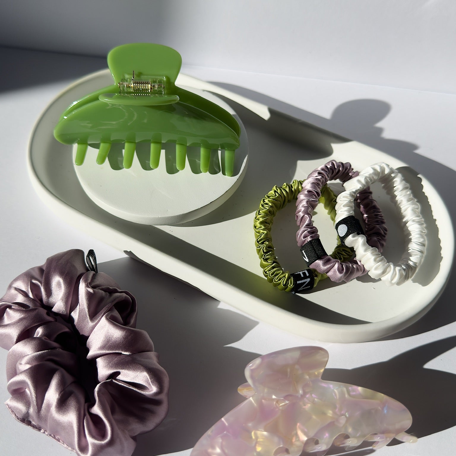 Bye bye breakage! This satin scrunchie has been carefully designed to be gentle on your hair and prevent crimping and frizz. Whether you're working from home, doing a face mask, or sleeping on your silk pillowcase, this luxuriously soft scrunchie will give your hair the extra love it deserves.