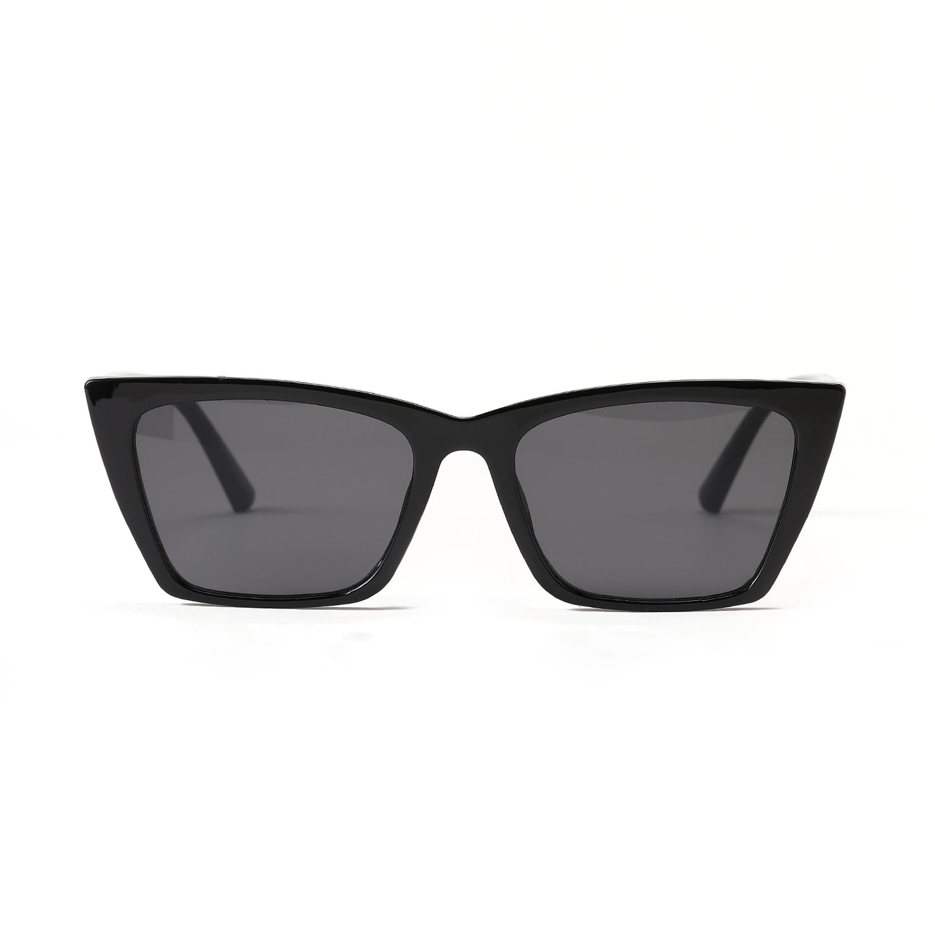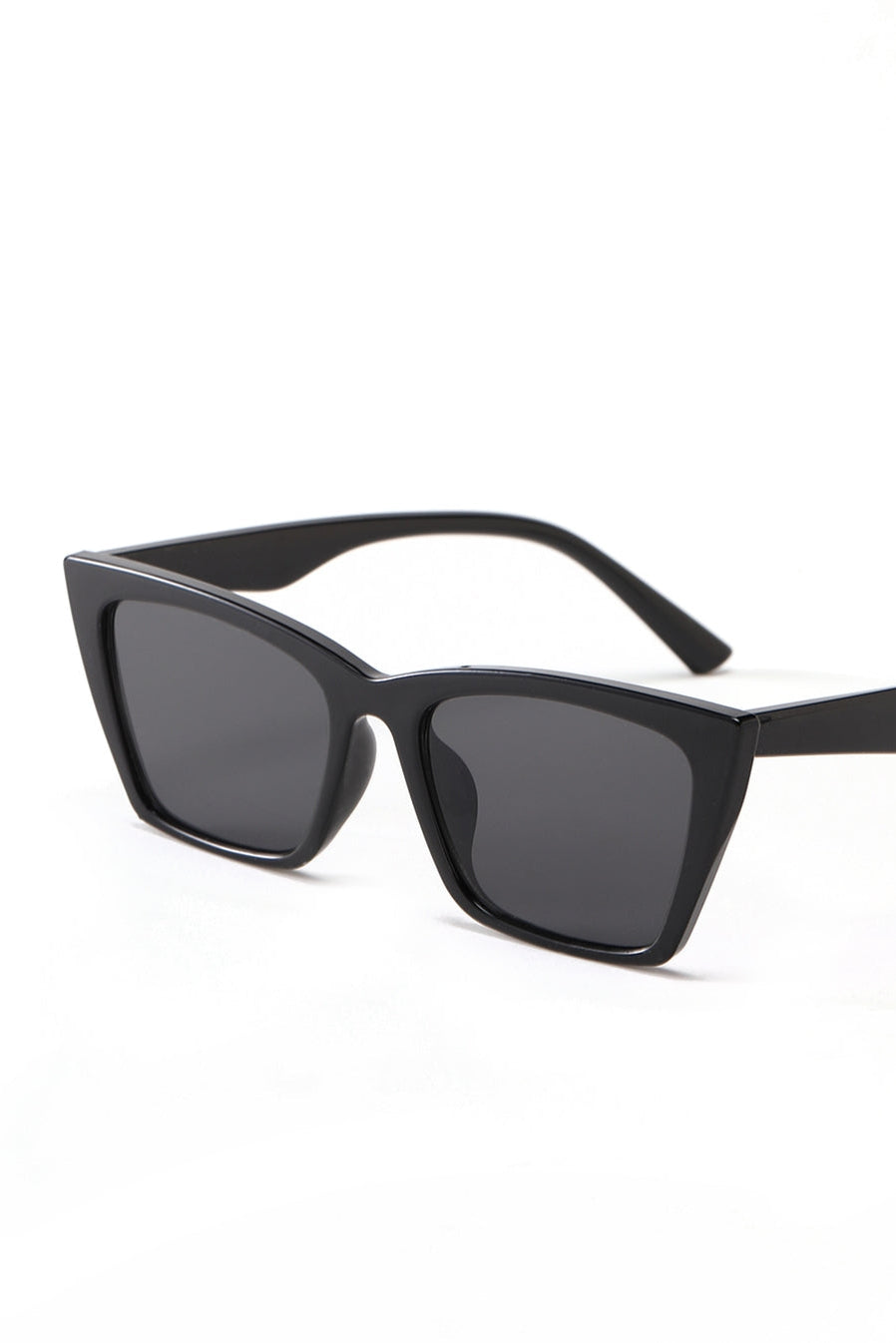 Introducing The Kiara - Black! Shield your eyes in style with these retro-inspired rectangular frames. Perfect for adding a touch of sophistication to your look, these cat-eye frames feature bold black detailing and dark tinted lenses. Protect your eyes in a fashion-forward way with The Kiara.
