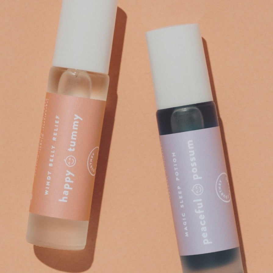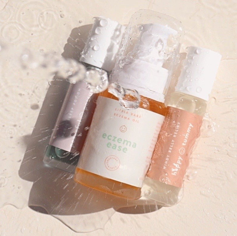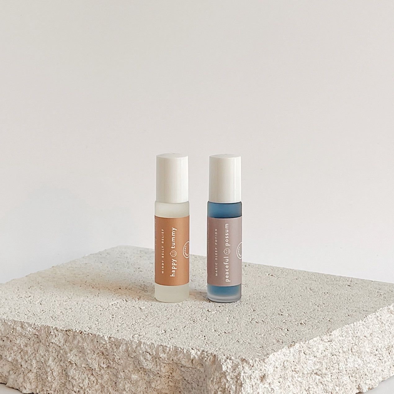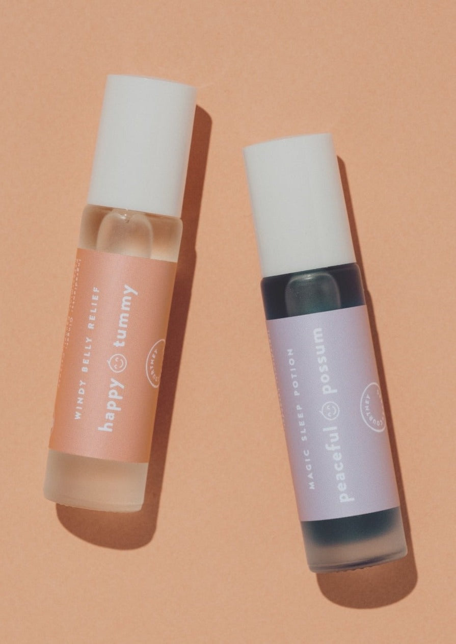 Roll blend onto belly and massage in a clockwise motion before feeds and when your little one needs a little help doing number 2s.
