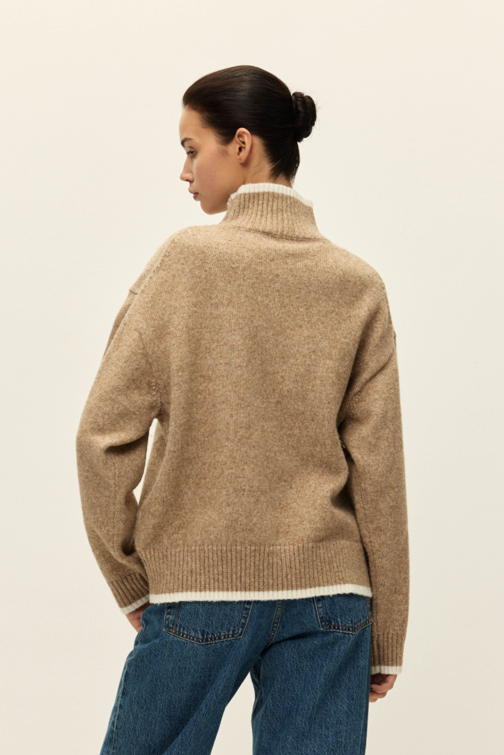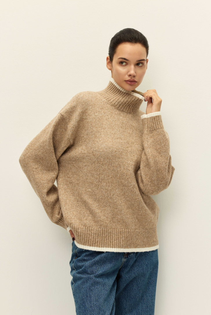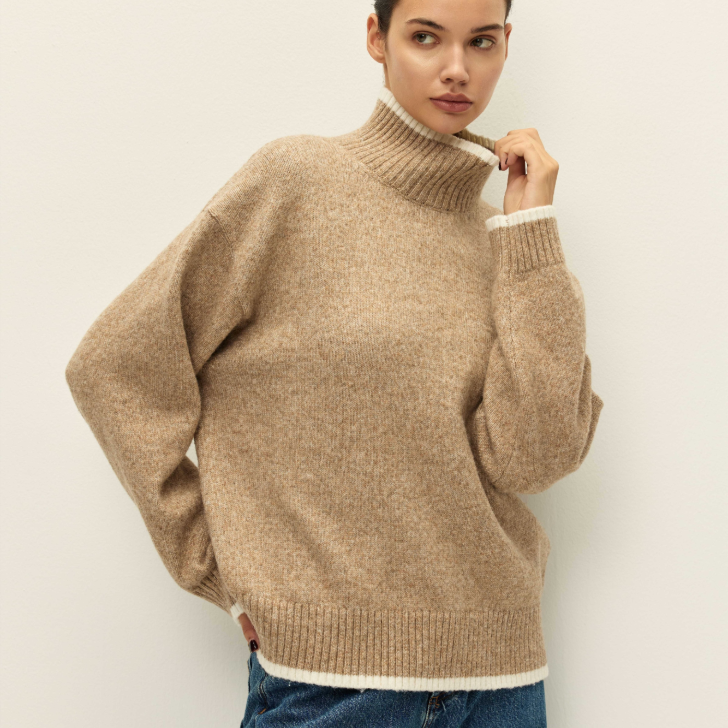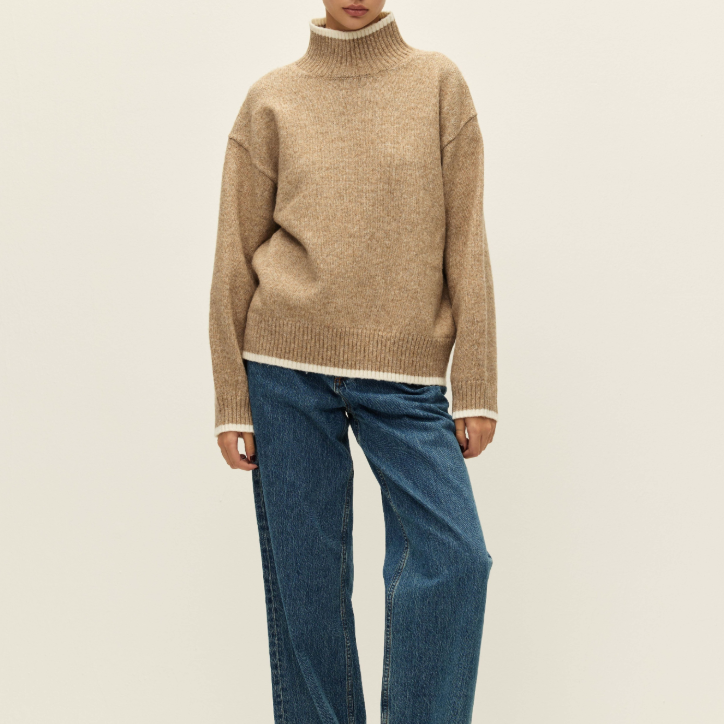 Wrap yourself in cozy comfort with the May Turtleneck Sweater—a delightful knit that's anything but boring. Featuring a cream-lined turtleneck and matching sleeve cuffs, this sweater brings a playful contrast that feels both chic and inviting. Perfect for layering or wearing solo, it's your new go-to piece for effortless style that keeps you warm and wonderfully snug all season long.