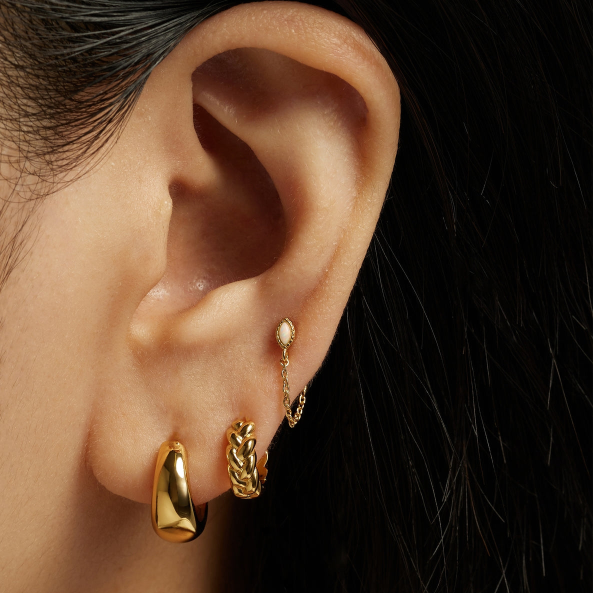 Featuring a sleek and minimalistic design, the Daria Huggies are perfect for everyday wear, adding a subtle yet distinctive accent to any look. They hug the lobe just right ensuring a comfortable fit, making them ideal for all-day wear without sacrificing on trendsetting appeal.