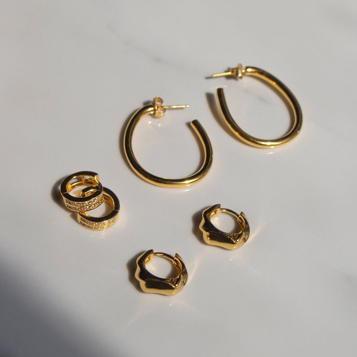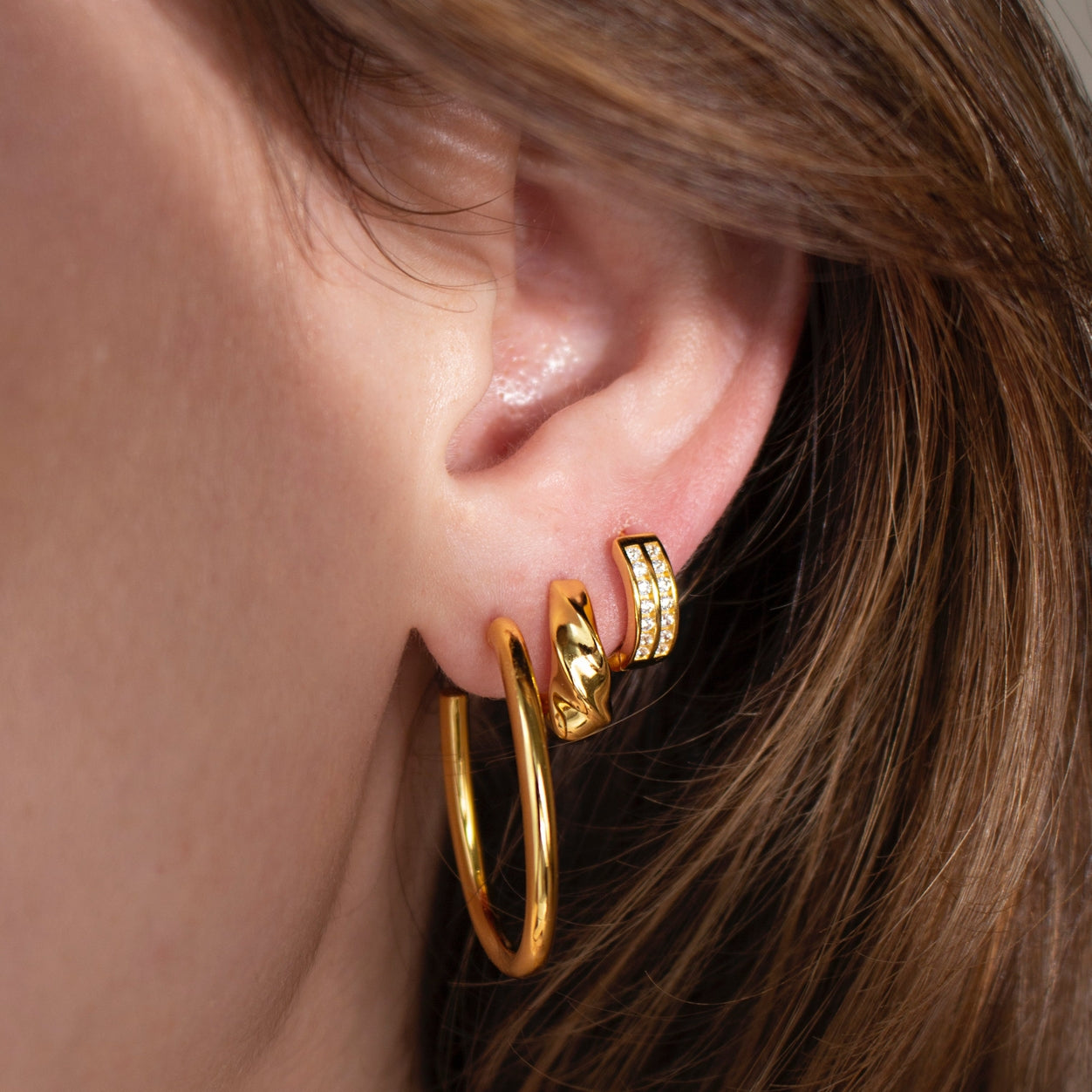 Add a touch of sparkle with the Freya Twist Huggies Gold! Crafted from 18k gold-plated 925 sterling silver, these fun hoops feature a 10mm inner diameter and a 14mm outer diameter with a sturdy 5.5mm thickness—perfect for making your ears twinkle all day long. Stylishly small but boldly bright, they’re the playful pop your jewelry collection has been waiting for!