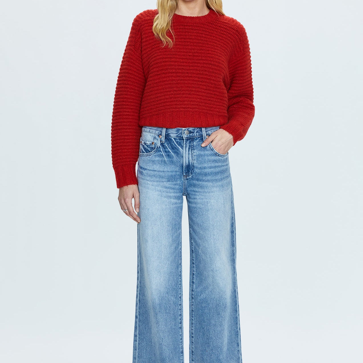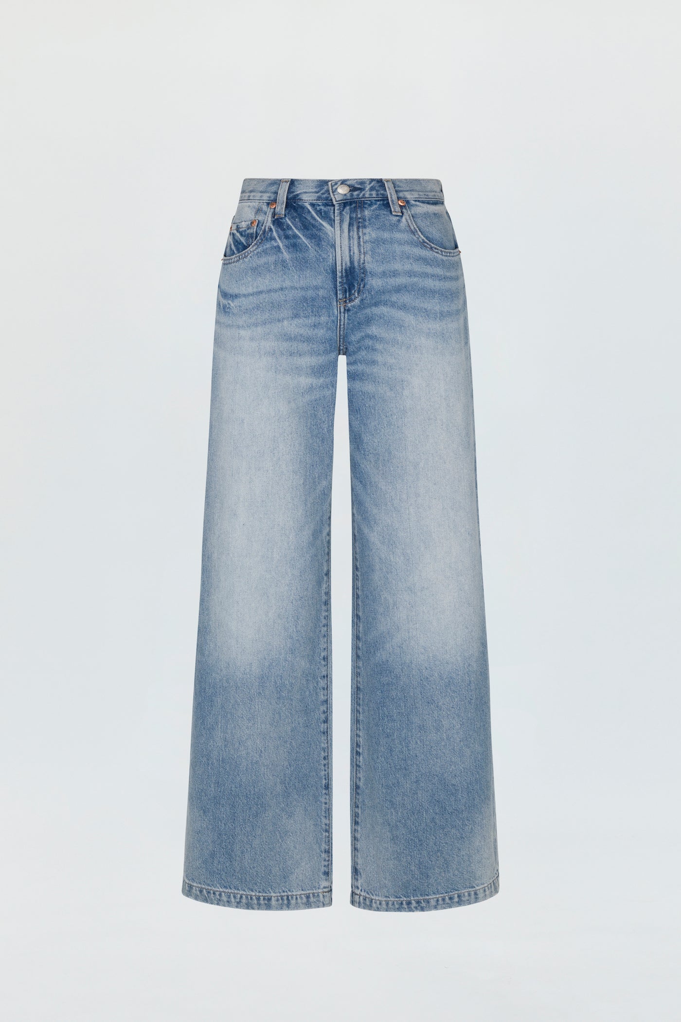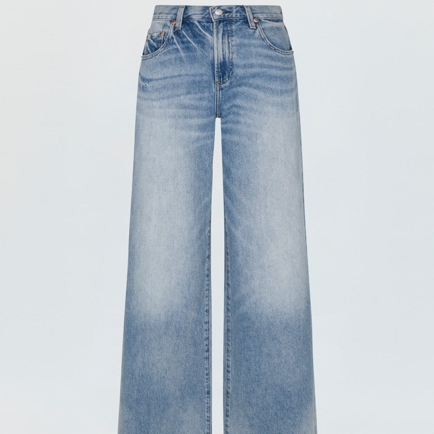 The Jadyn Low Slung Palazzo jeans bring the perfect mix of cool and comfy. Designed to sit low on the hips with a relaxed palazzo leg silhouette, these jeans are crafted from lightweight rigid denim that holds its shape and features dynamic fading and whiskering for a playful touch. Made from 100% cotton.