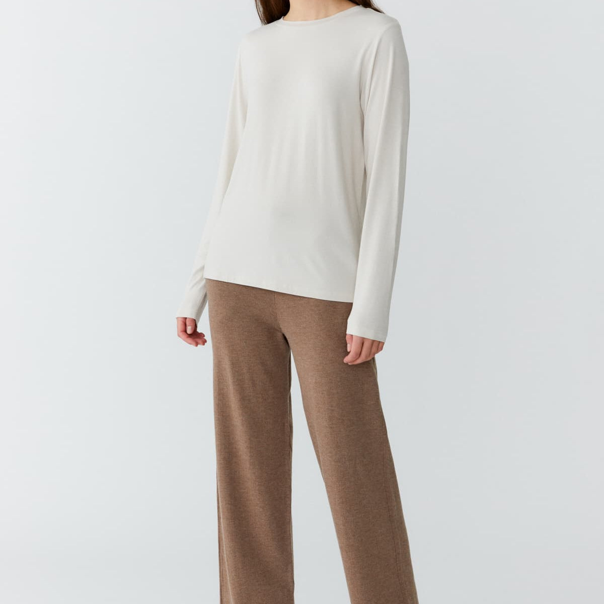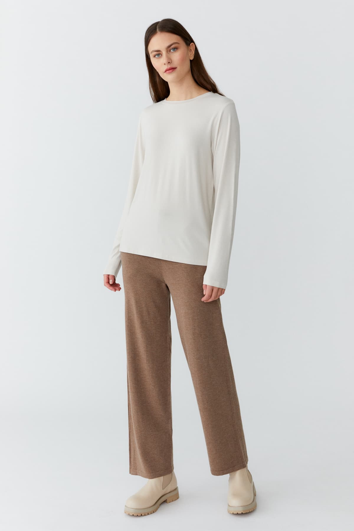 Straight fit trousers with wide legs in a super soft bamboo cashmere blend. These multi-purpose, elegant and comfy pants are suitable for all occasions - at work, at home and out and about and come in the perfect fit. The unique fabric of bamboo guarantees a natural, super soft clothing experience that is also breathable, eco-friendly and has antibacterial qualities.