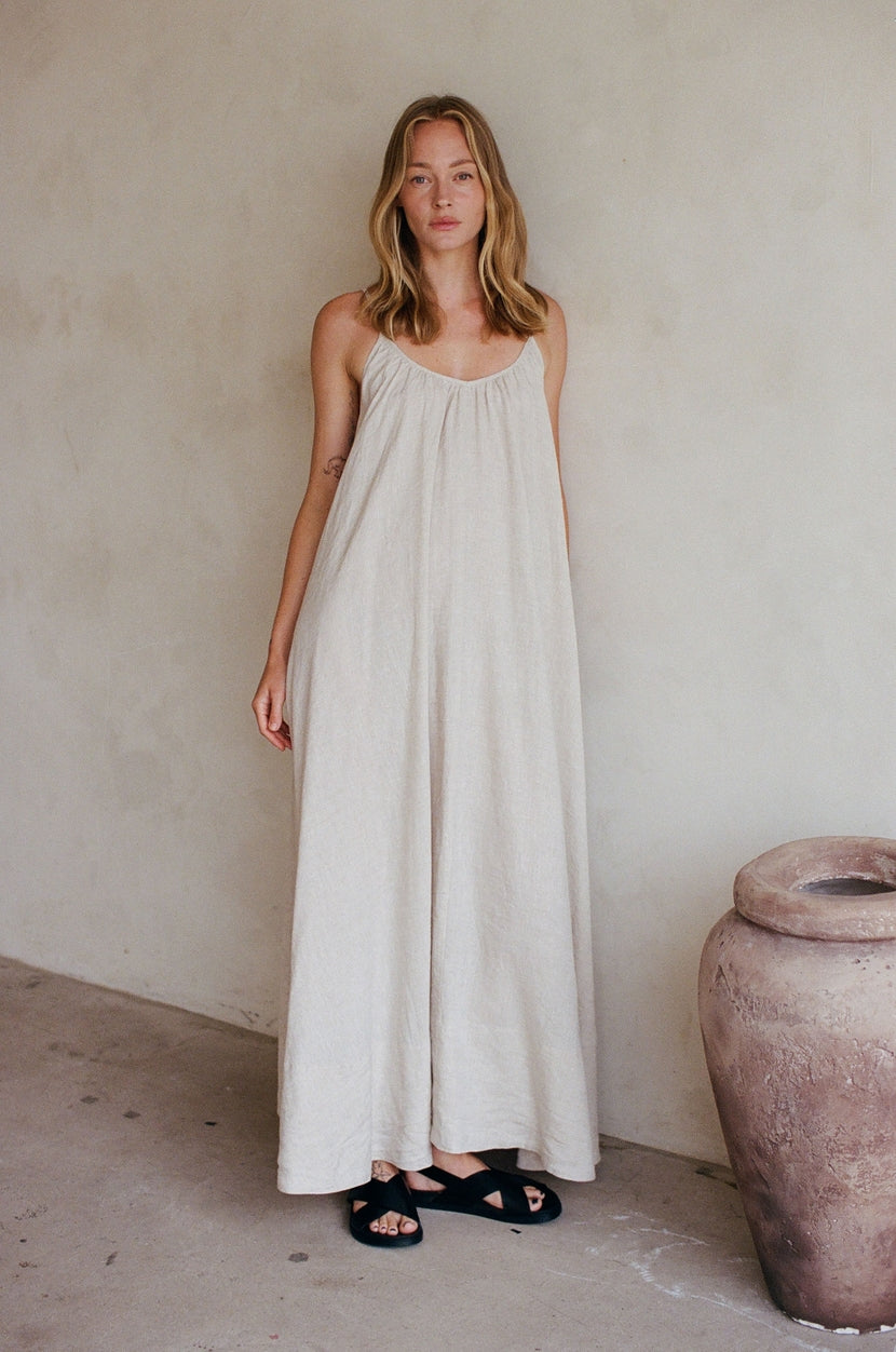 Step into effortless style with the Lanae Maxi Dress. Made from breathable 100% woven linen, this dress features playful spaghetti shoulder straps and a flattering round neck. Its flowing maxi length keeps you cool and comfortable, perfect for sunny days and casual outings. With no lining, it offers a light, airy feel that moves with you—ready for adventure, fun, and all the good vibes.