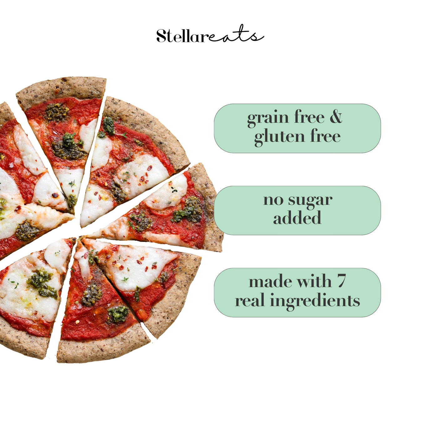 Our pizza is soft, doughy and super filling! It will hold up against any topping or sauce you desire! We're talkin' real-deal, durable, won't crumble in your hands type of grain-free crust! Hot Tip: Reheat leftovers in a cast iron pan for a crispy bottom. Try it with pesto, mushrooms and goat cheese or a classic marinara-mozzarella combo.