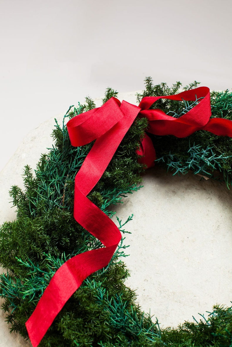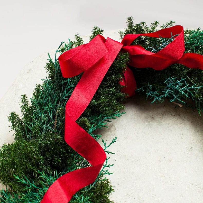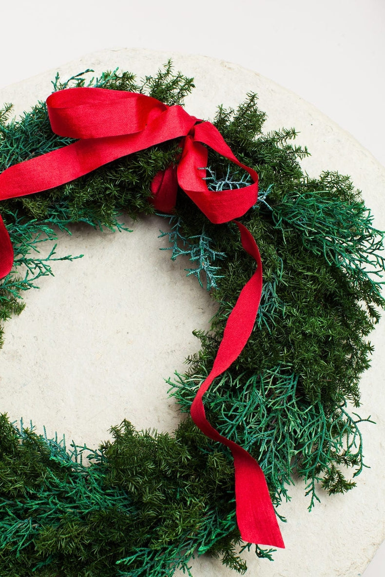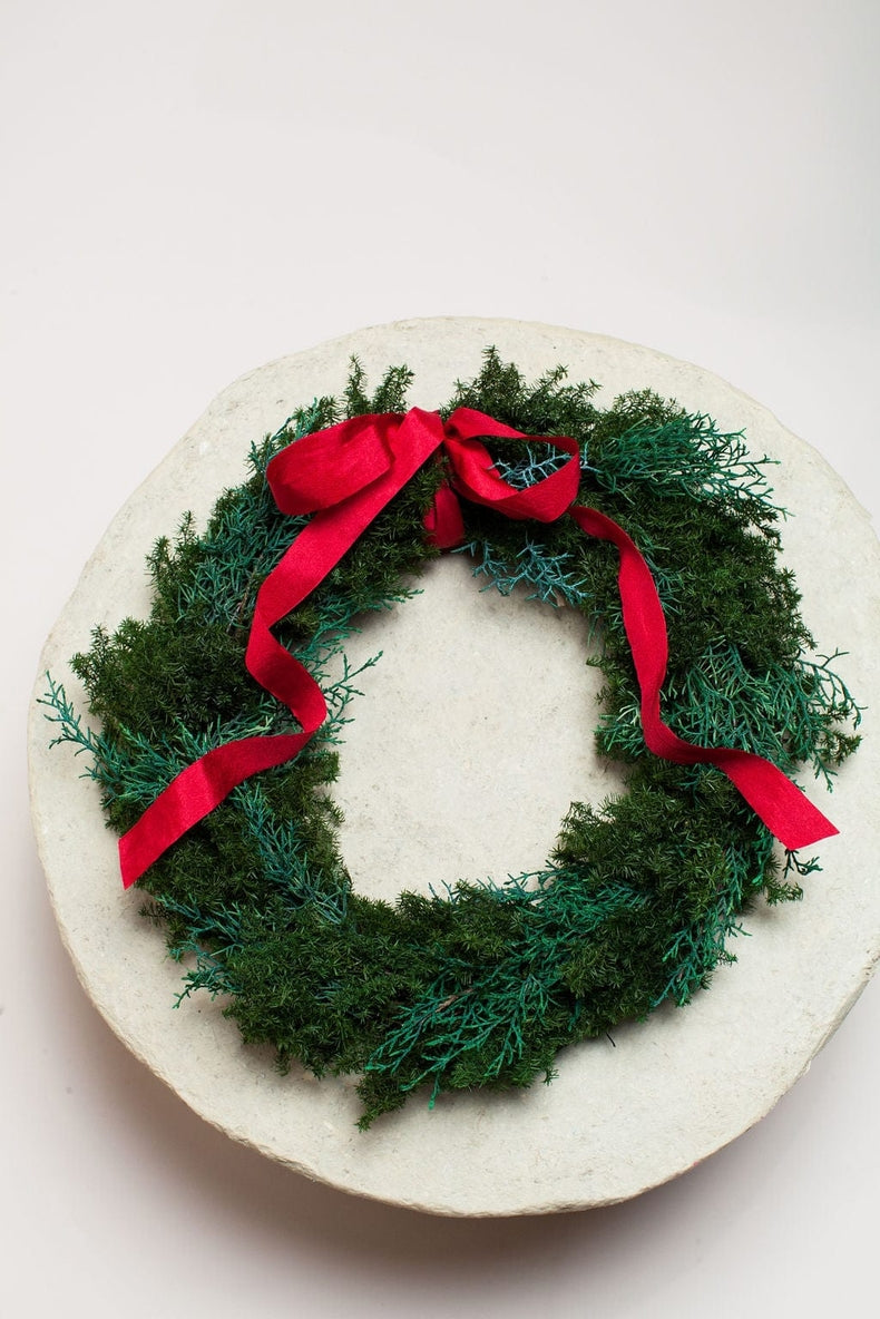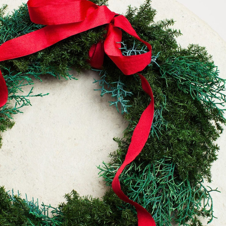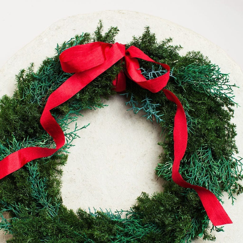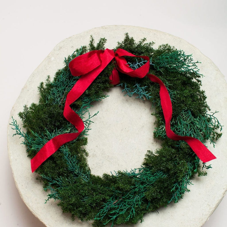Welcome the holiday season with our Preserved Evergreen Christmas Wreath! Made from a mix of preserved cedar, fir, and cypress, this 16" wreath will last year after year. Hang it indoors or outdoors, or use it as a centerpiece with candles for your winter gatherings. A must-have for standard front doors.
