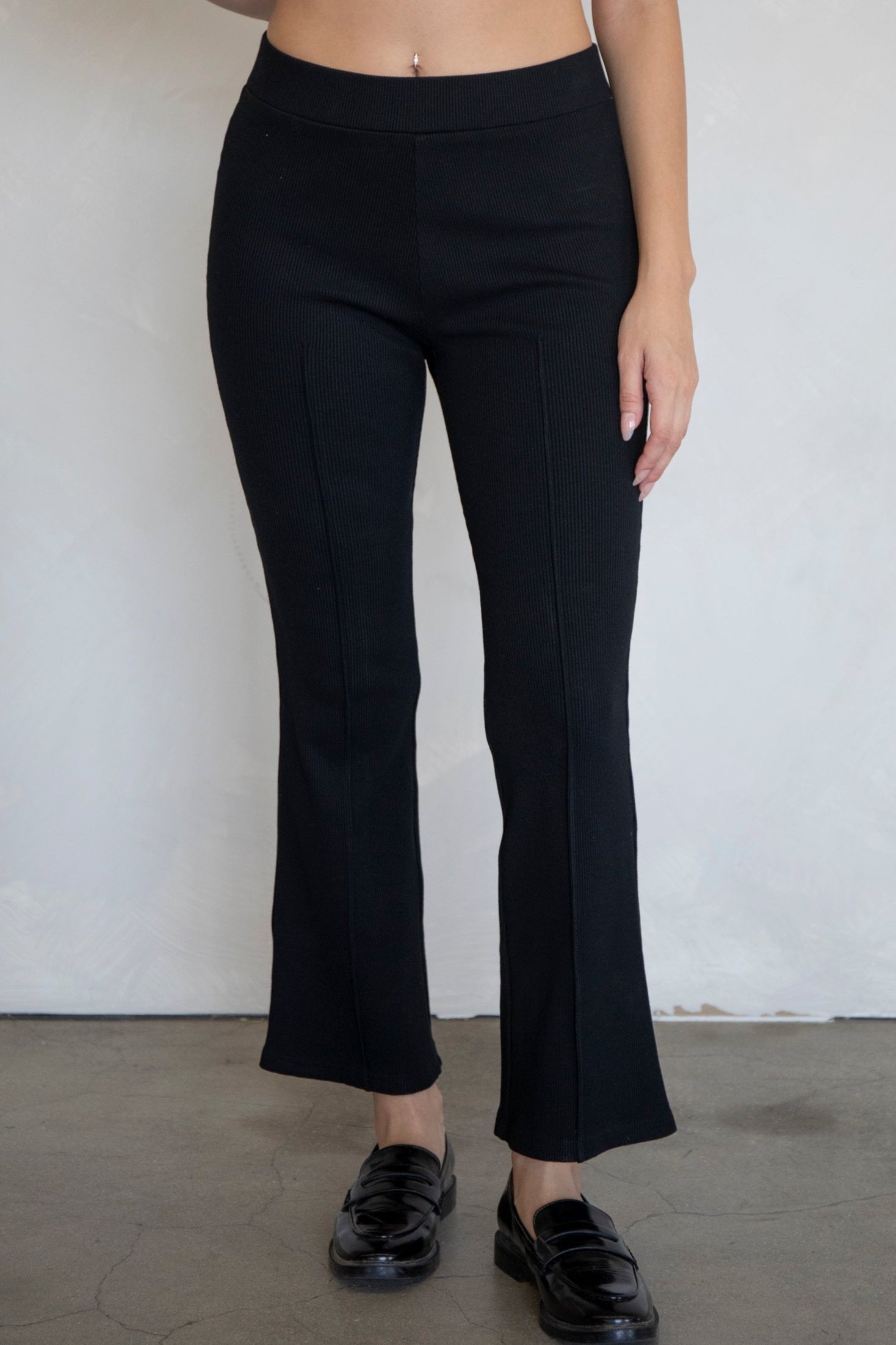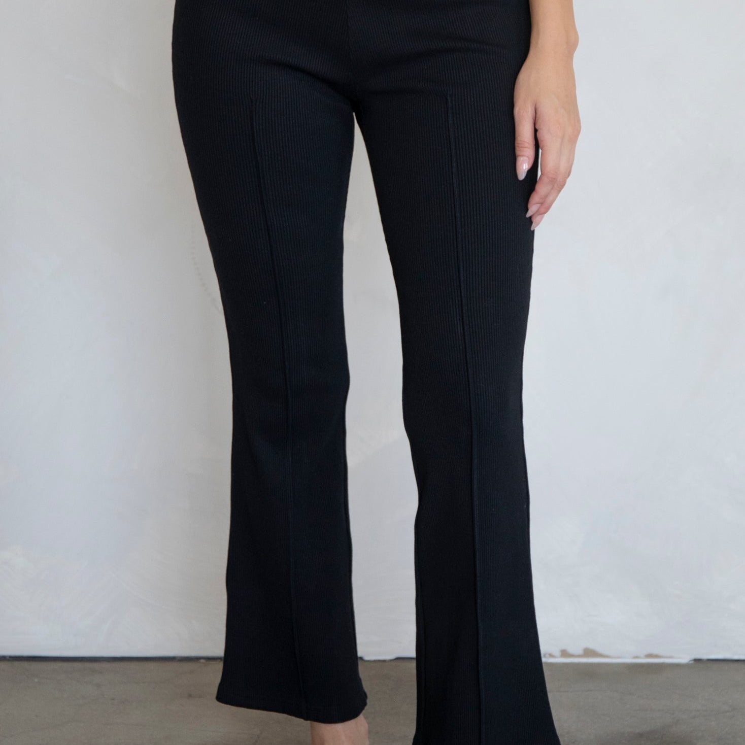 Get ready to strut your stuff in the Rowan Pants. These ribbed stretchy pants offer a comfortable, cropped flare fit and an elastic waistband for added convenience. Perfect for a day out or a night in, these pants will be your new go-to choice for effortless style.