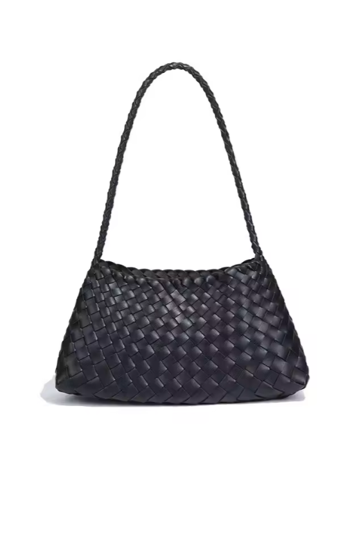 Add a touch of chic to your night out with the Sailor Woven Shoulder Bag in sleek black leather. Its woven design brings texture and flair, while the compact size keeps your essentials close without weighing you down. This playful yet sophisticated bag is perfect for dancing the night away or catching up with friends in style.