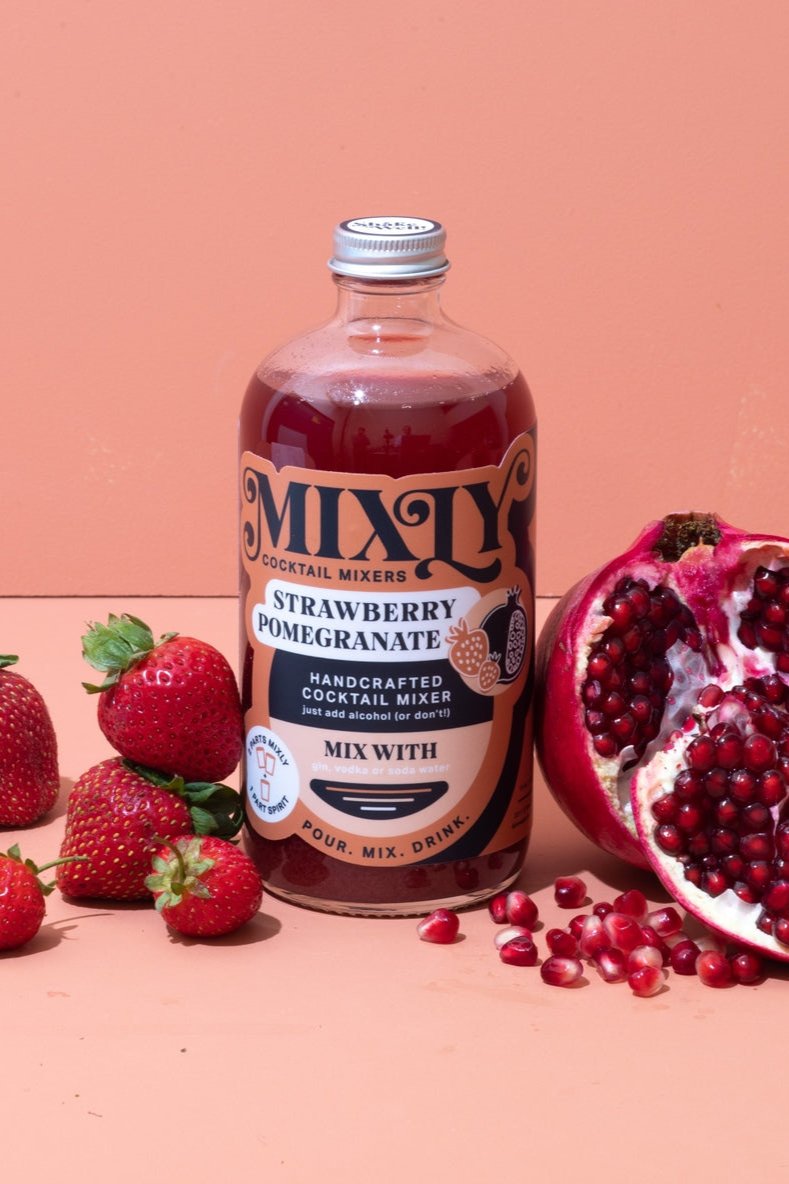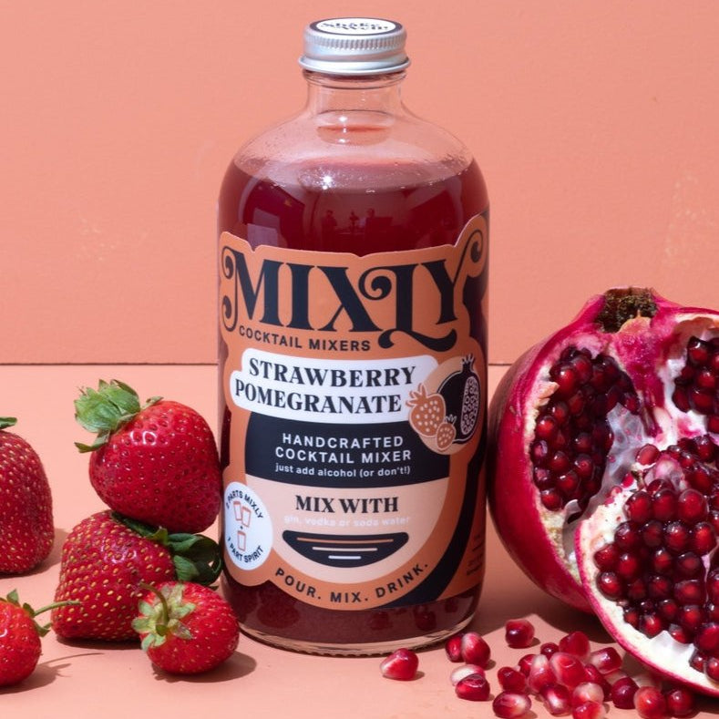 Introducing Mixly Strawberry Pomegranate Cocktail Mixer, a vibrant blend that transforms drinks into bold, juicy delights. This versatile mixer balances sweet and tart, ideal for both cocktails and zero-proof beverages. It's essential for any home bar and the perfect gift for drink enthusiasts.