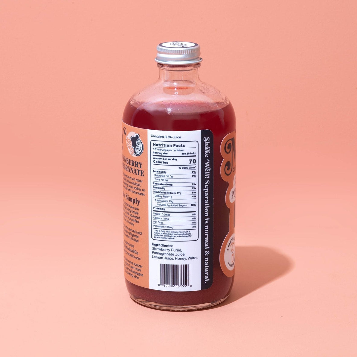 This premium cocktail mixer or elixir is handcrafted with ripe strawberries, tangy pomegranate, zesty lemon, and honey for subtle sweetness. No artificial additives – just all-natural, clean ingredients.