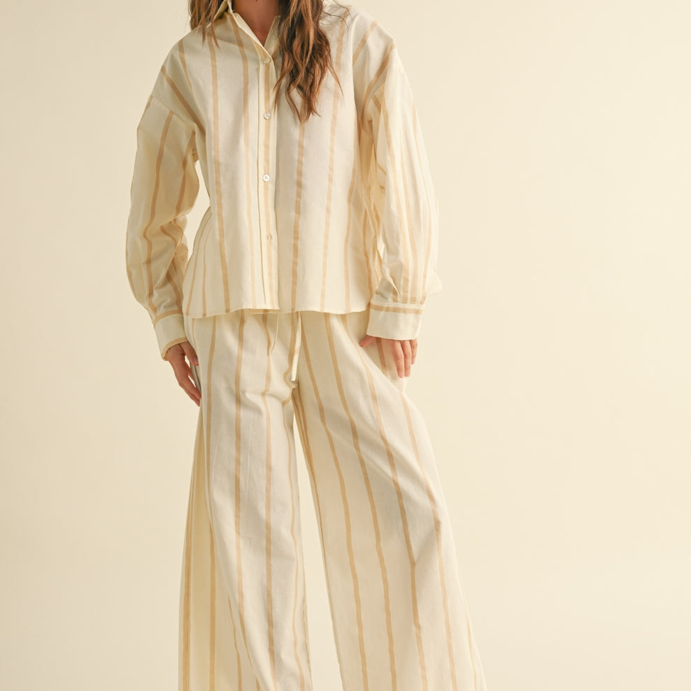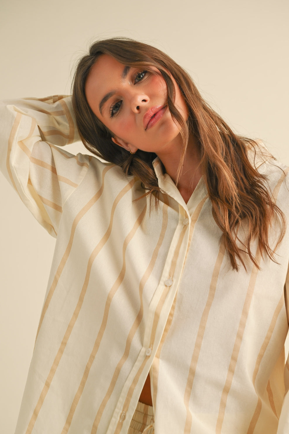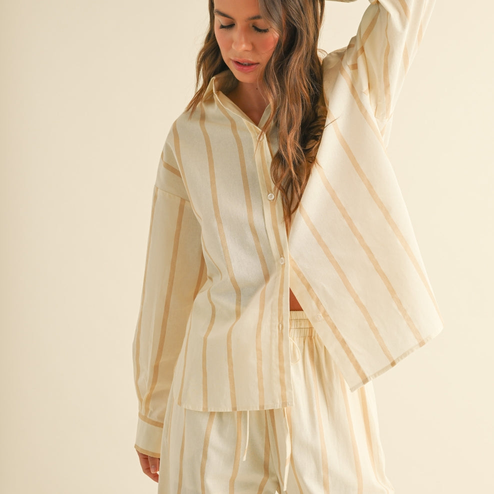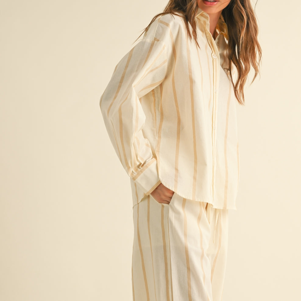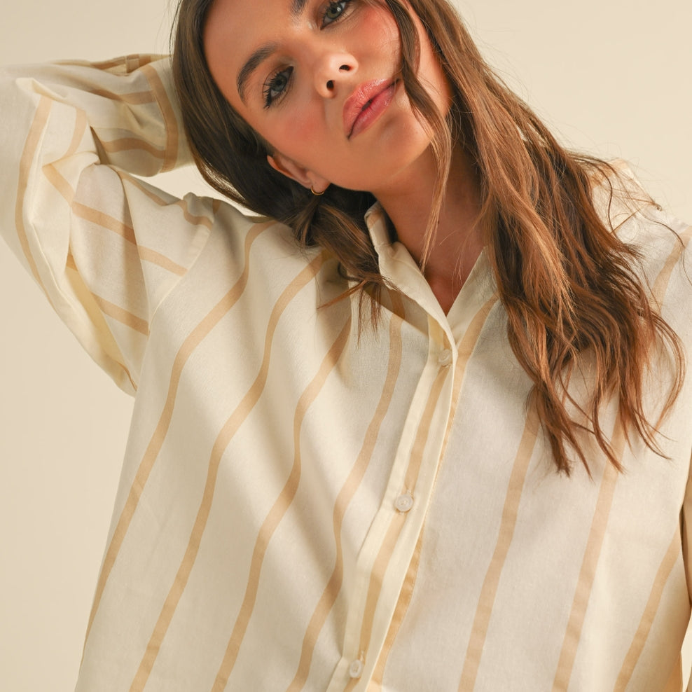 Stay cool and stylish in this Striped Button Down Shirt made from 100% cotton. Its crisp stripes and breathable fabric bring a fresh, playful vibe to your wardrobe, perfect for sunny days and casual adventures. Button up and let the fun begin!