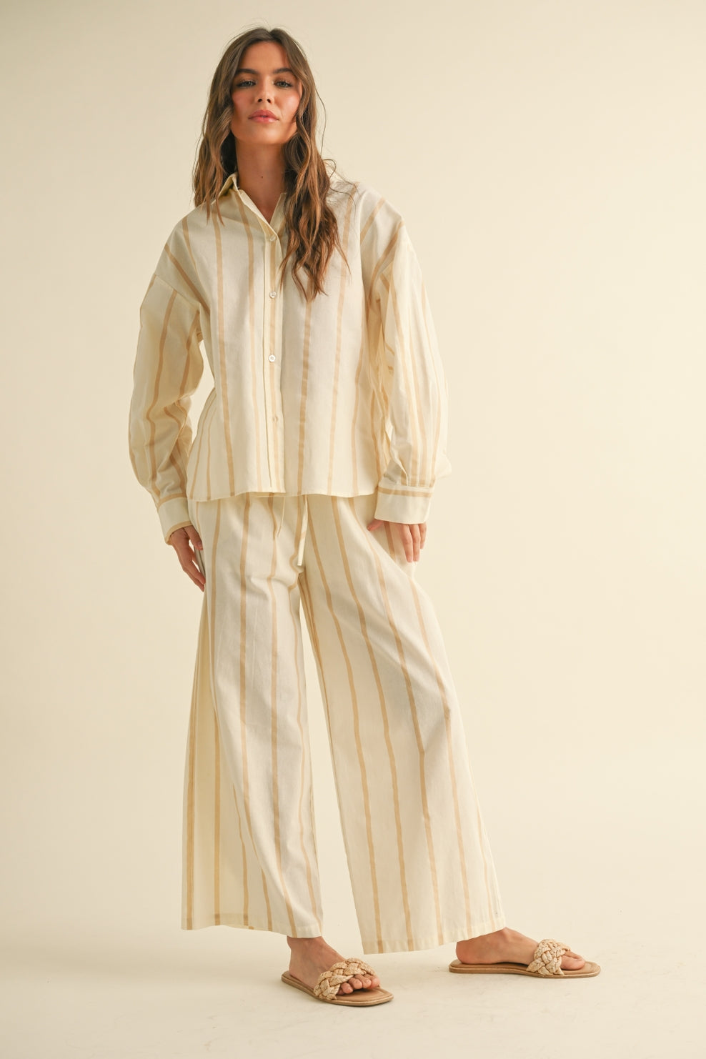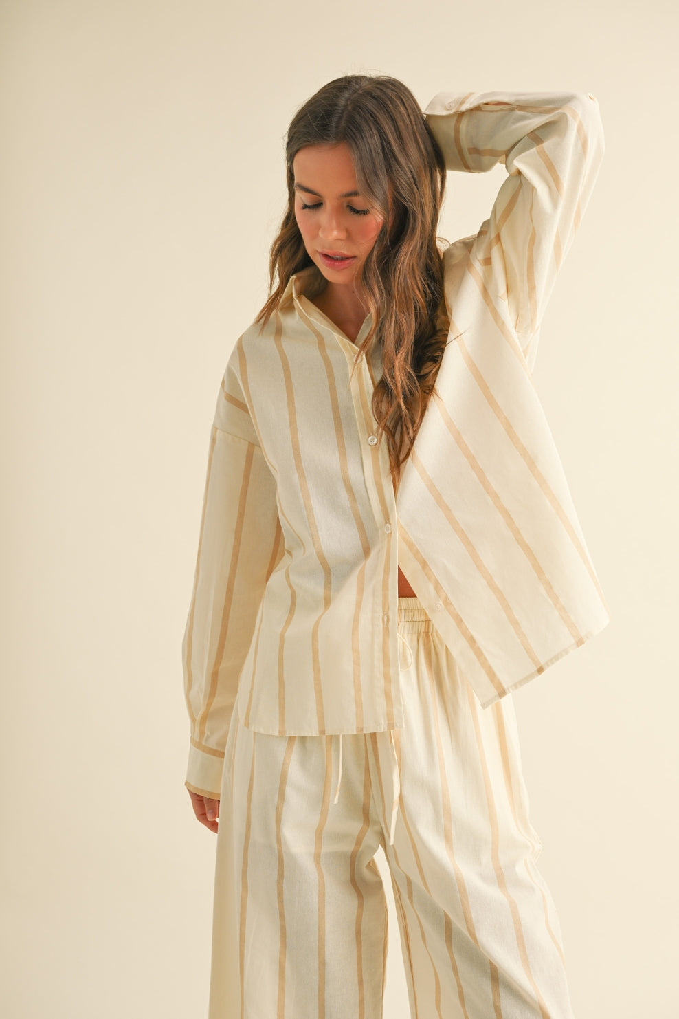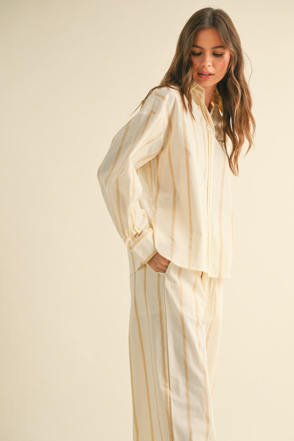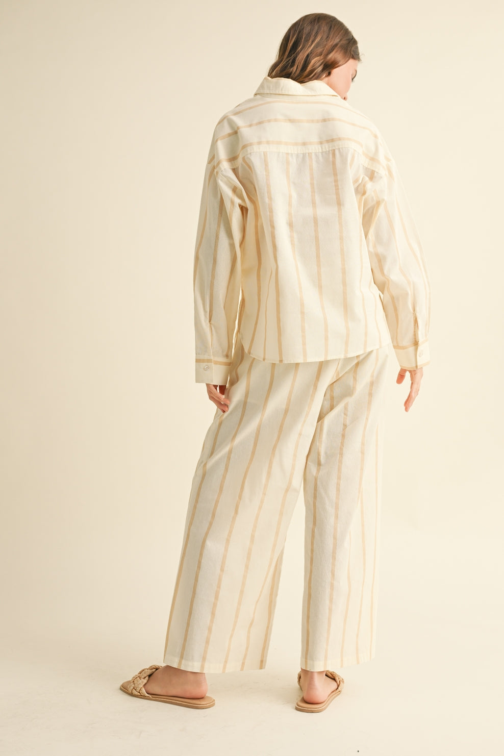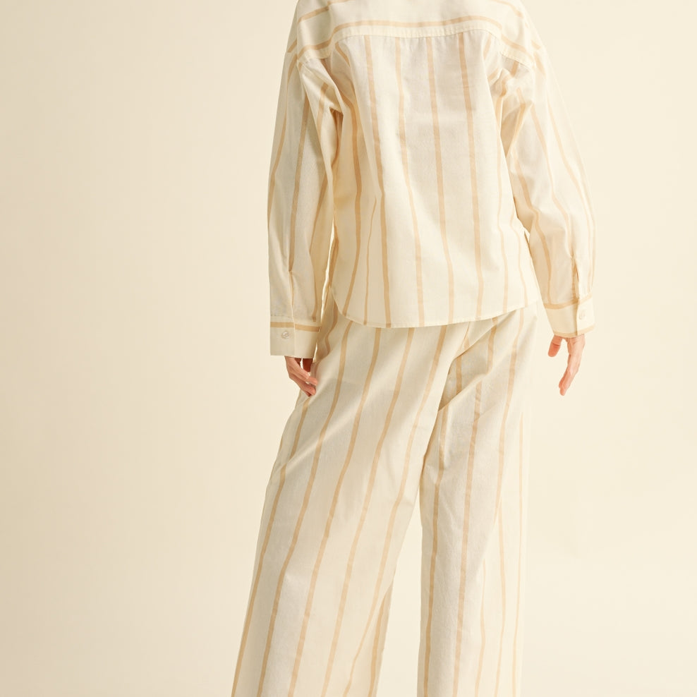 Stay cool and stylish in this Striped Button Down Shirt made from 100% cotton. Its crisp stripes and breathable fabric bring a fresh, playful vibe to your wardrobe, perfect for sunny days and casual adventures. Button up and let the fun begin!
