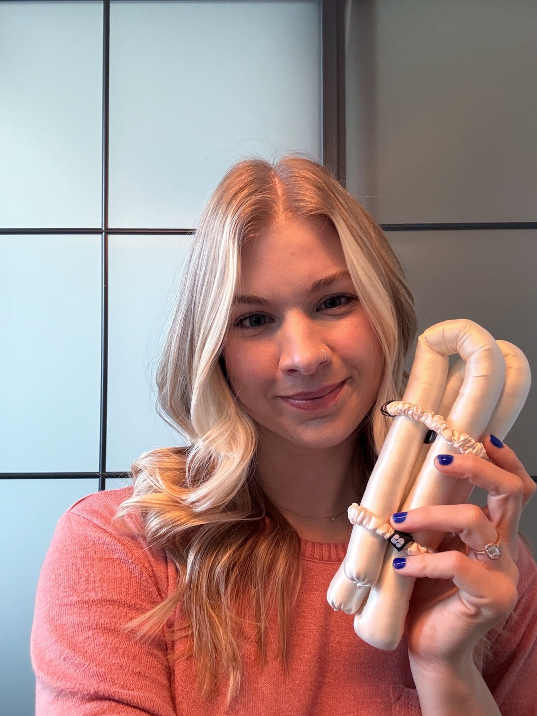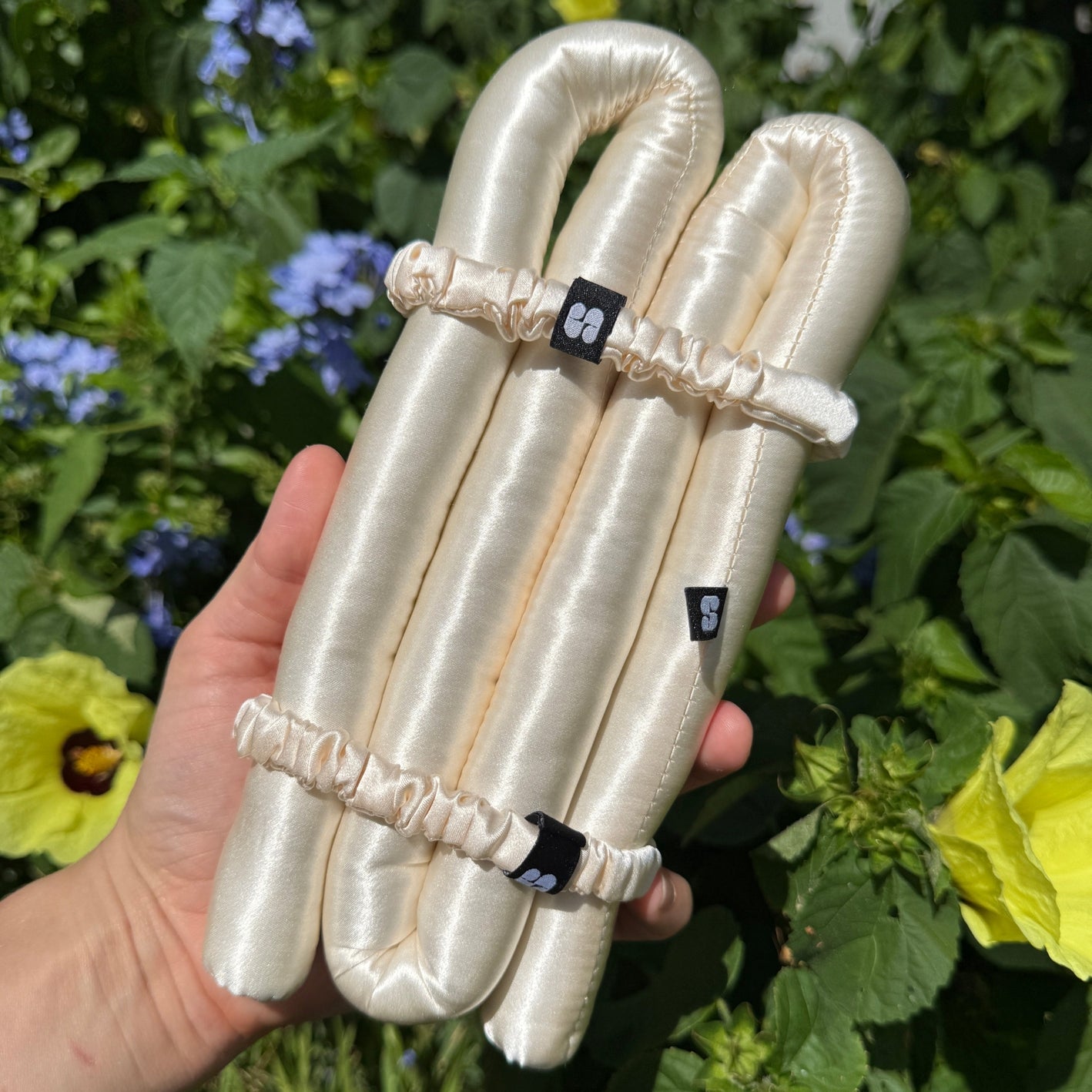 Each set includes: • 1 silk curling rod • 2 matching silk scrunchies