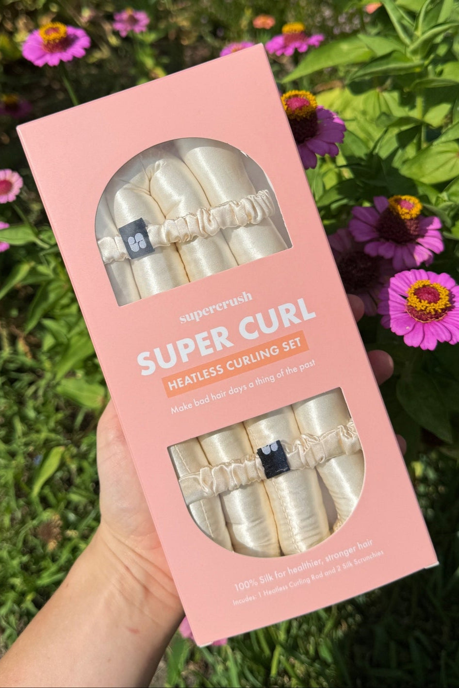 Ready to break up with your curling iron? Meet the Super Curl - our first-ever heatless curling set designed to give you effortless, damage-free waves with zero styling stress.