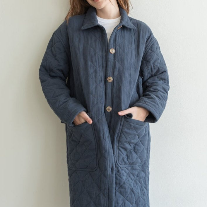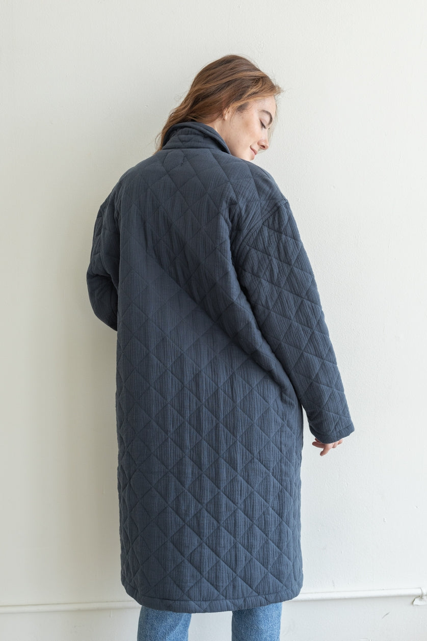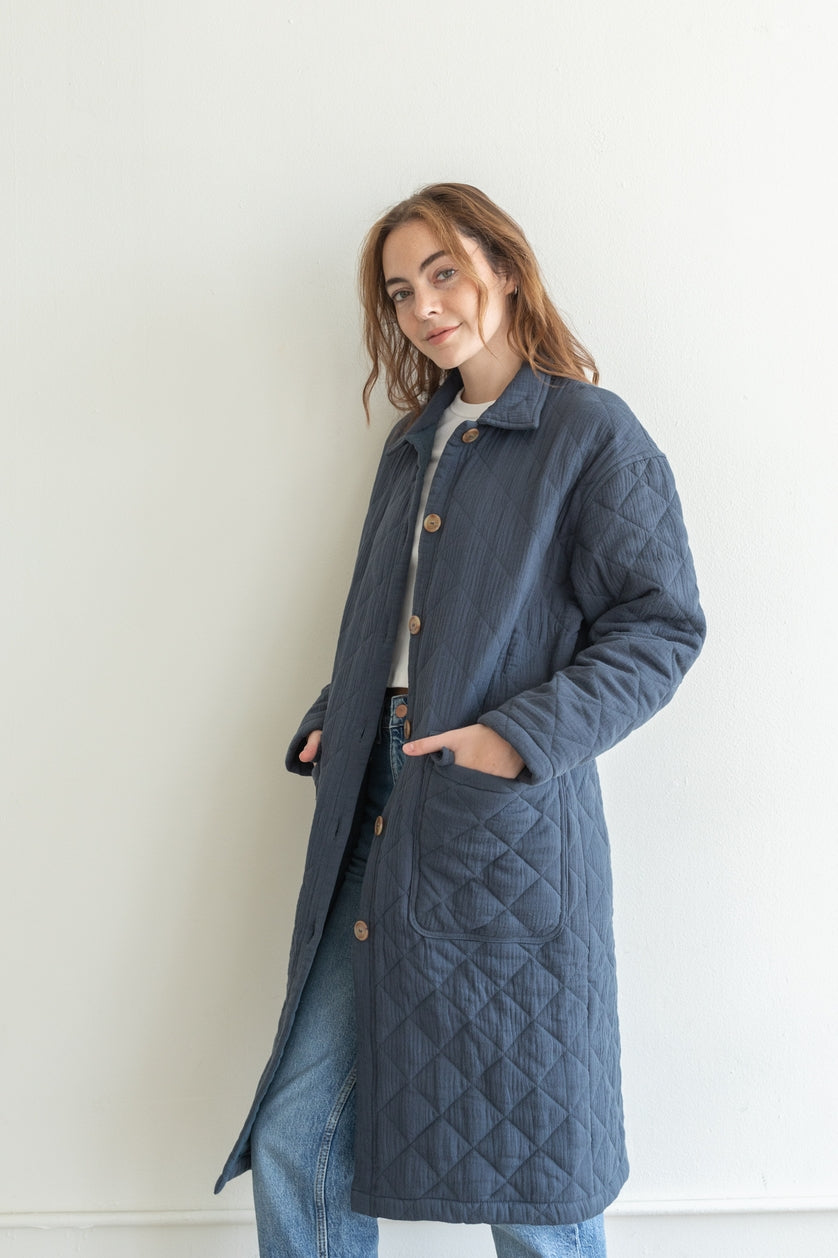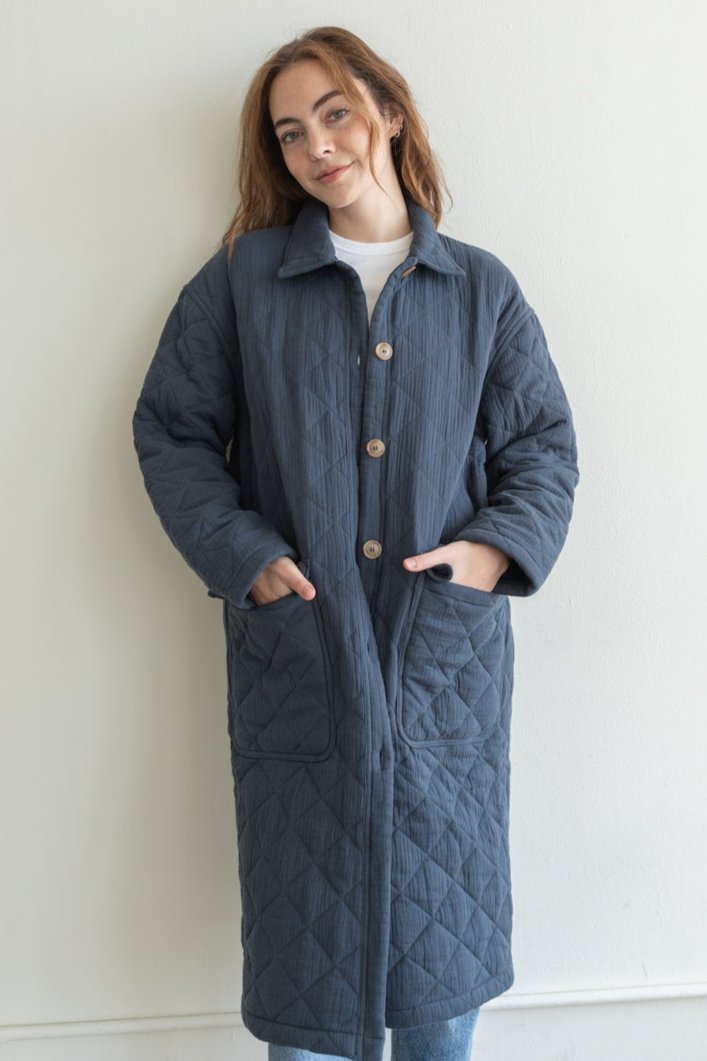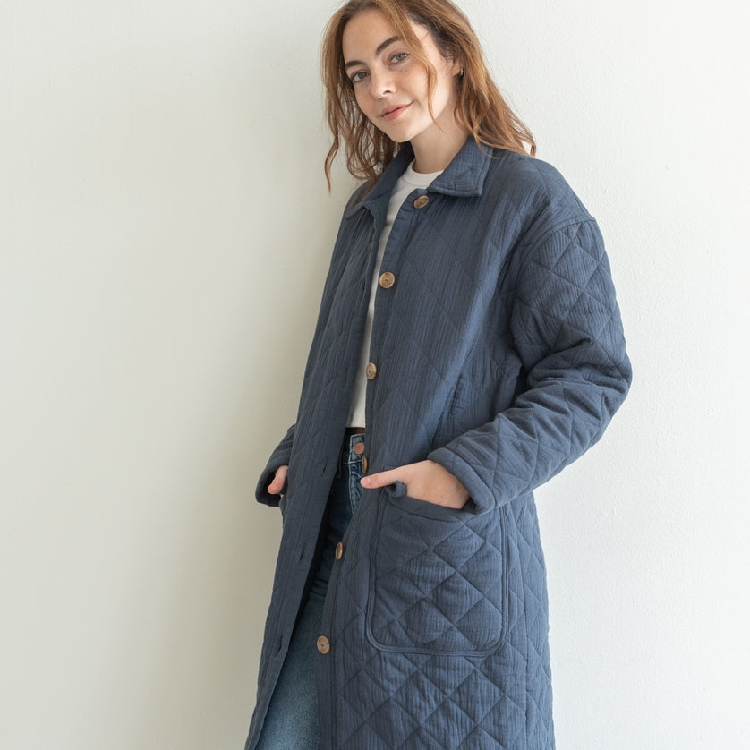 Experience the joy of everyday ease with our Thea Coat from Things Between. This women's coat, designed with a harmonious blend of comfort and style, features a quilted button-down design and dual front pockets. Perfect for those little moments in life, our coat offers an elevated level of casual-cool that effortlessly complements your wardrobe. Embrace the journey of finding joy and hope in the Things Between with our Thea Coat.