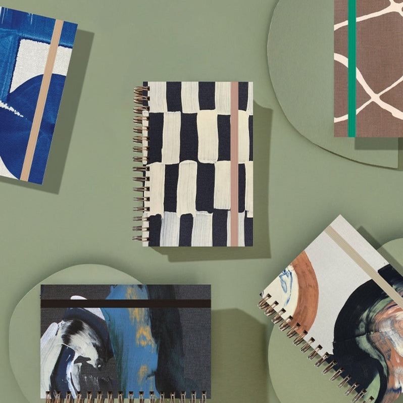 Hand-painted cloth cover with high quality wire binding. Both cover and back cover are hand painted, making each notebook completely one of a kind.