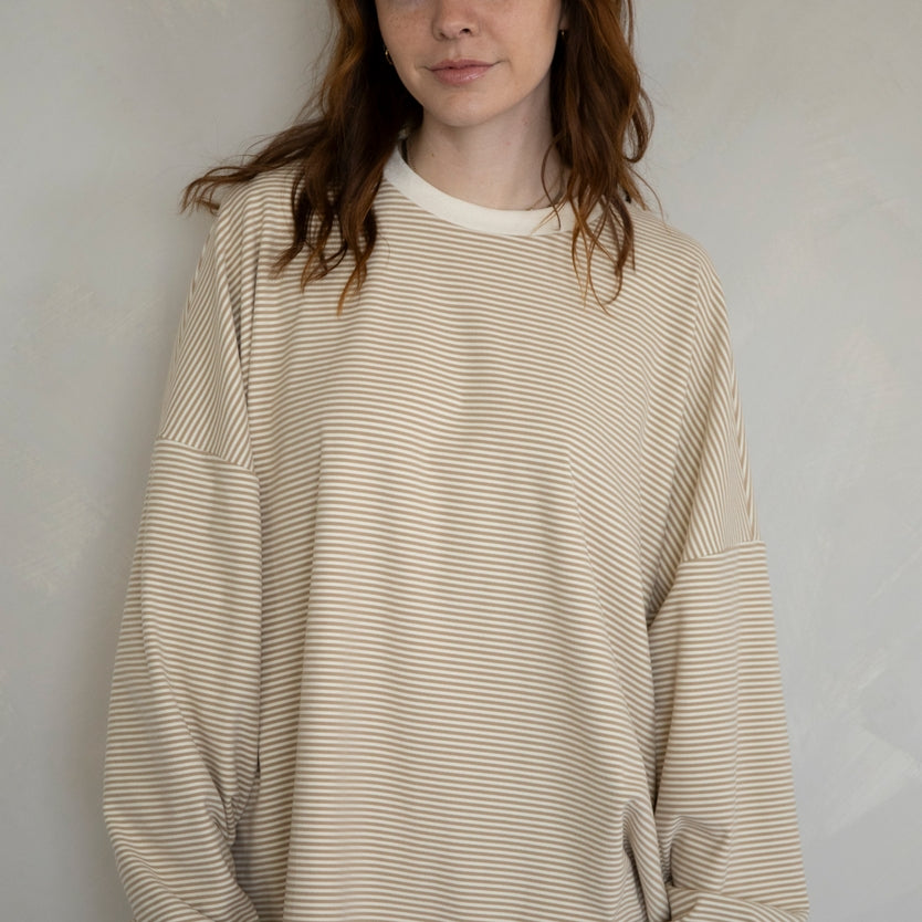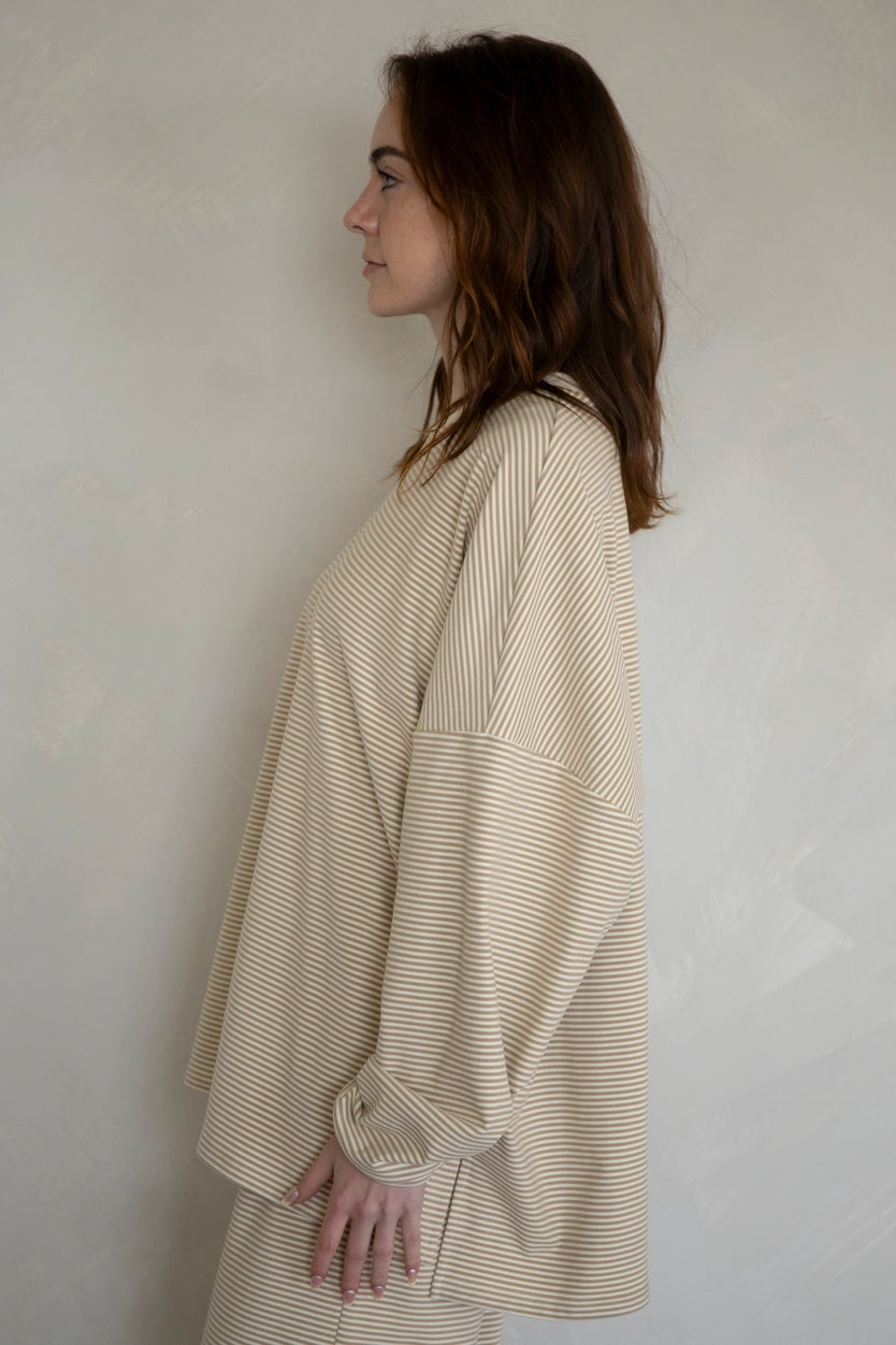 Super soft and cozy, striped oversized top. With its slouchy fit and classic pattern, it’s the kind of piece you’ll reach for again and again.