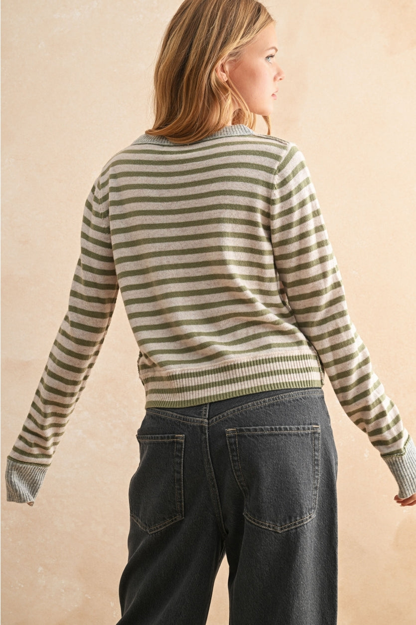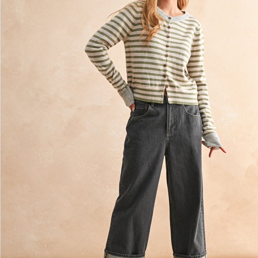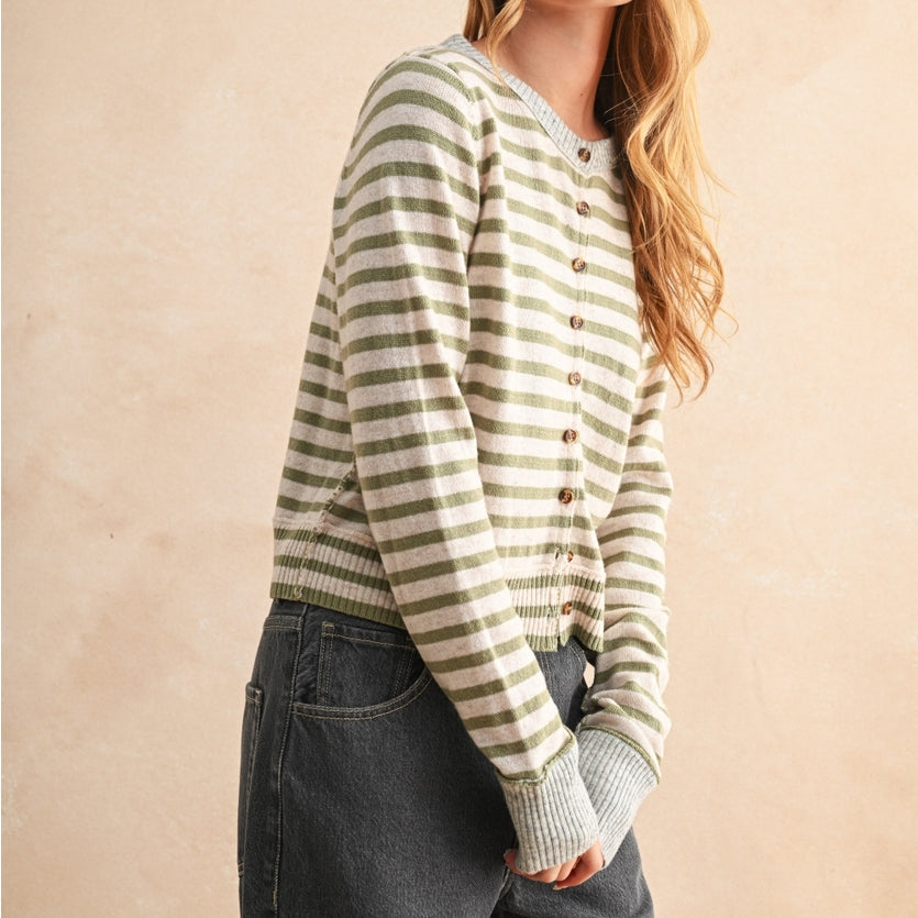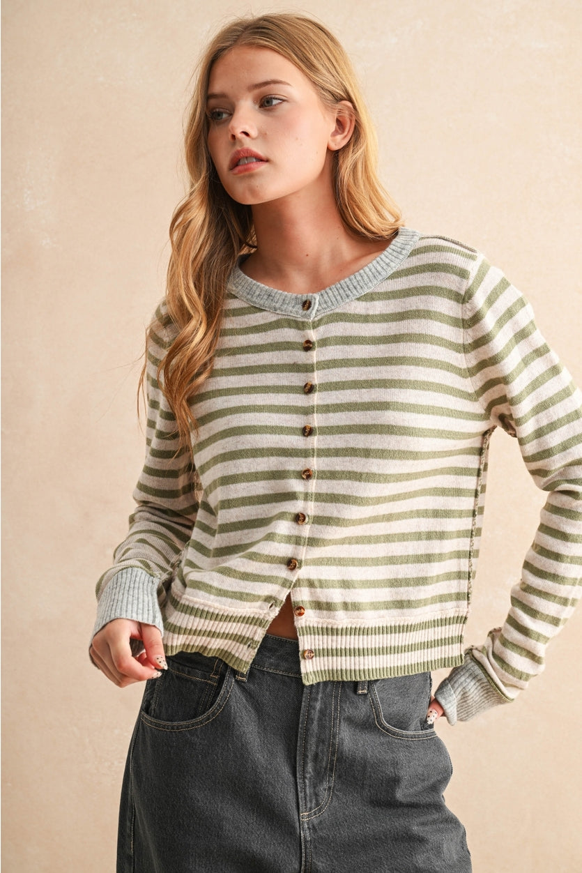 Striped Button Front Cardigan