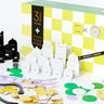 Designed in collaboration with Daniel Emma, this awesome box contains three classic games: Chess, Checkers & Snakes & Ladders. Plus there's a bonus game - you need to build your game board out of puzzle pieces first.