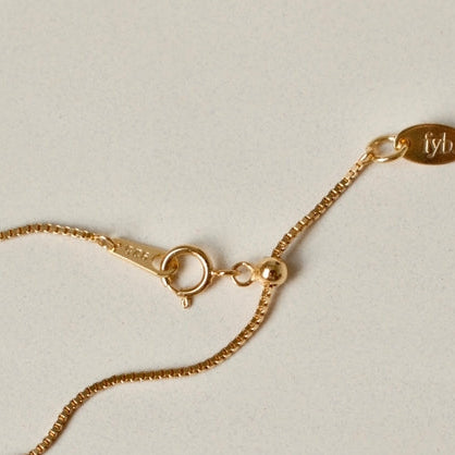 18k gold plated sterling silver box chain, adjustable slider bead to wear any length up to 18" The perfect chain to pair with our charms.