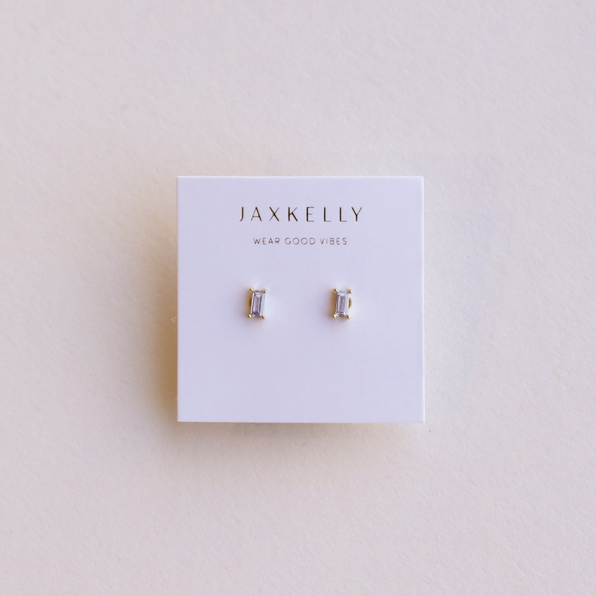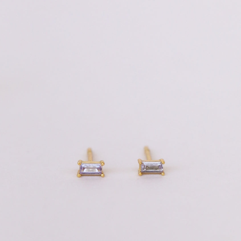 A pair of classic baguette stud earrings designed to add a pop of color. Made for stacking, layer in this classic shape for a fresh new look.
