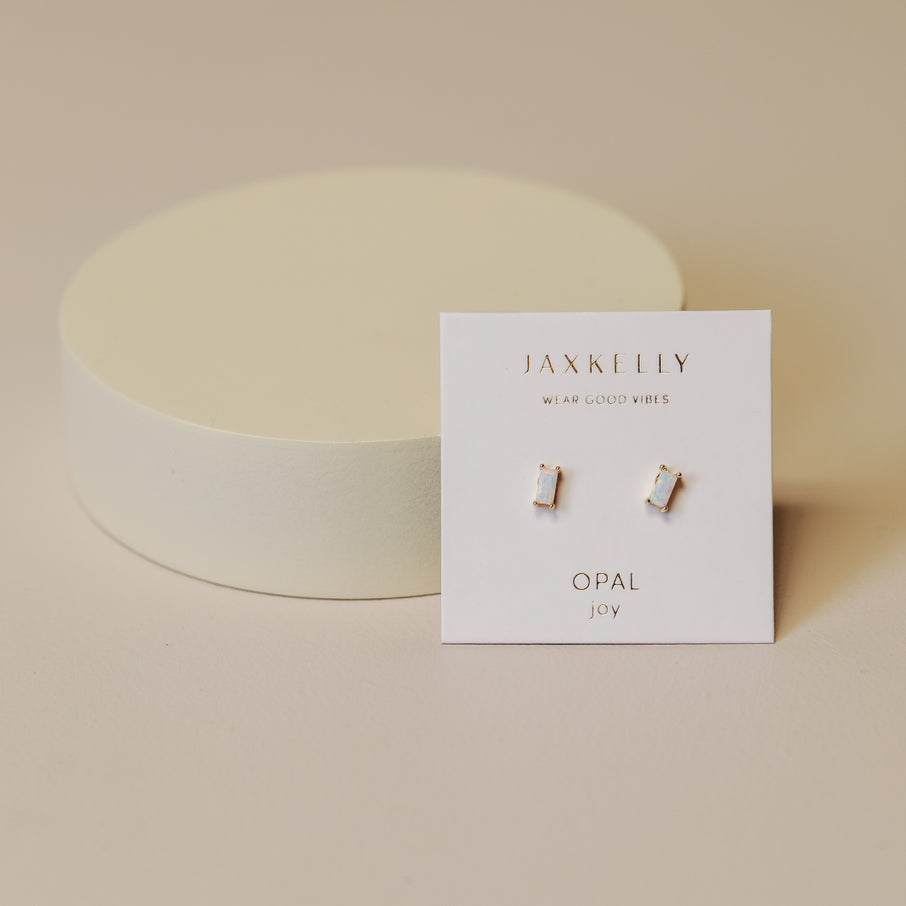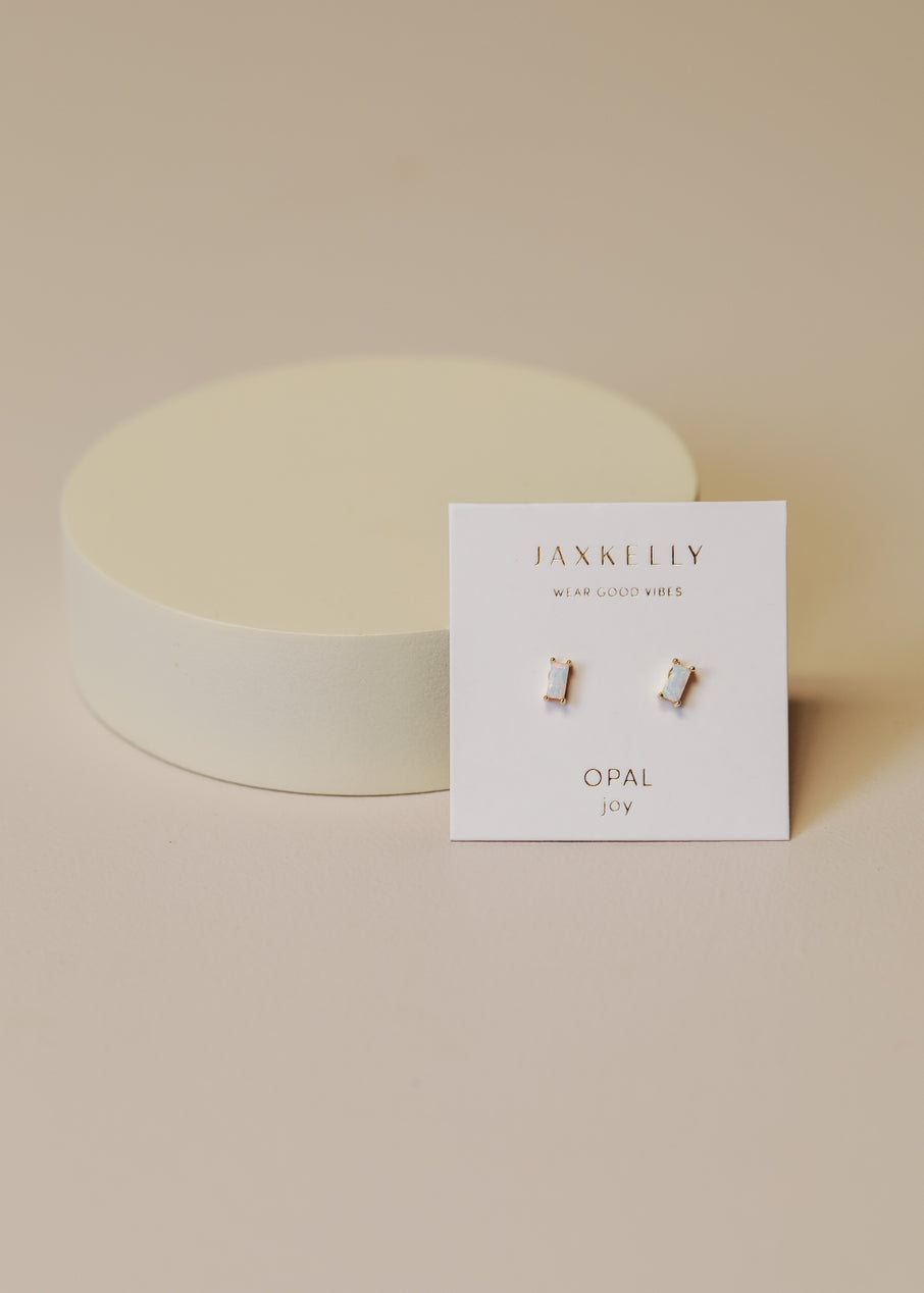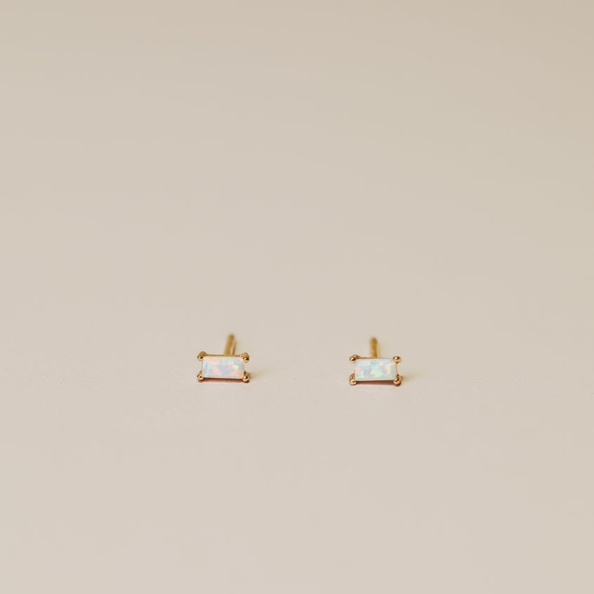 Baguette White Opal Earring