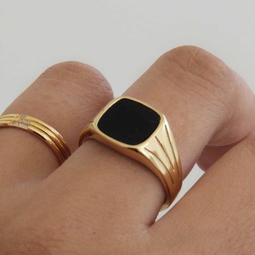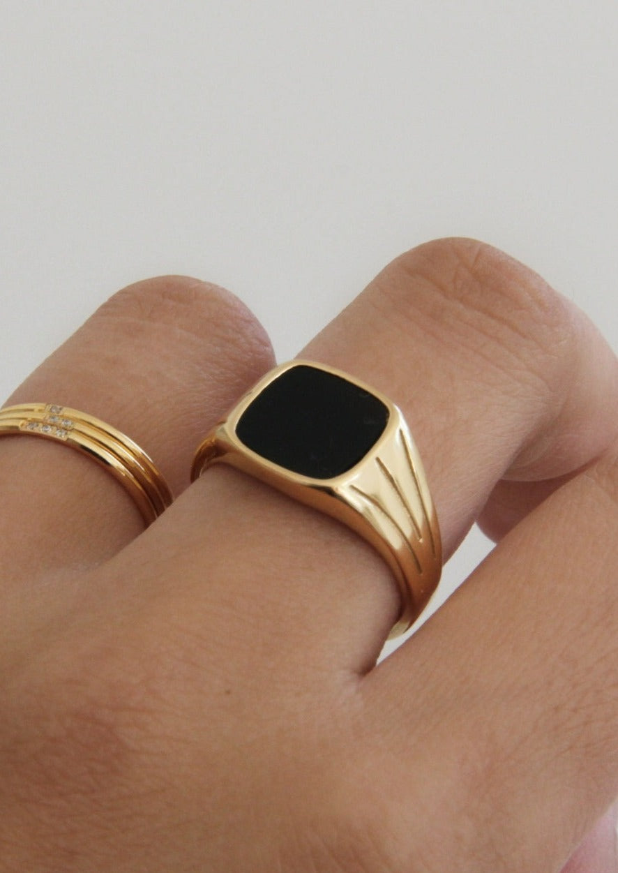 The classic Black Signet Ring makes the perfect statement piece to be worn alone or layered with other rings.