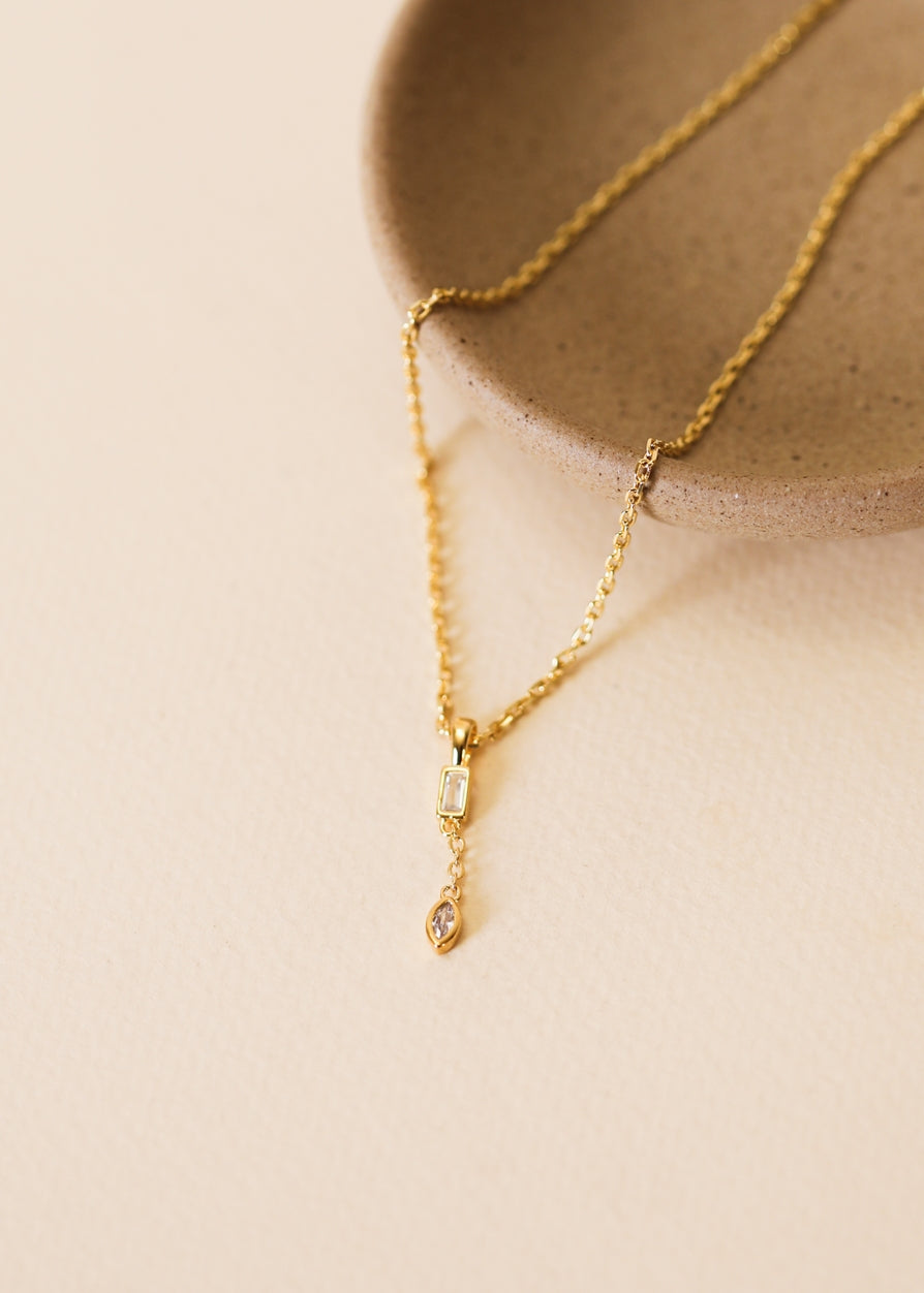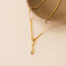 A beautifully elegant Dimond cut chain that catches the light strung with a drop pendant. Perfect for layering. Tarnish Free - Long lasting protective coating safeguarding your jewelry from sweat, water, and more. 5x more gold that standard 18k gold plating over brass Hypoallergenic – Lead Free Adjustable 16in to 18in