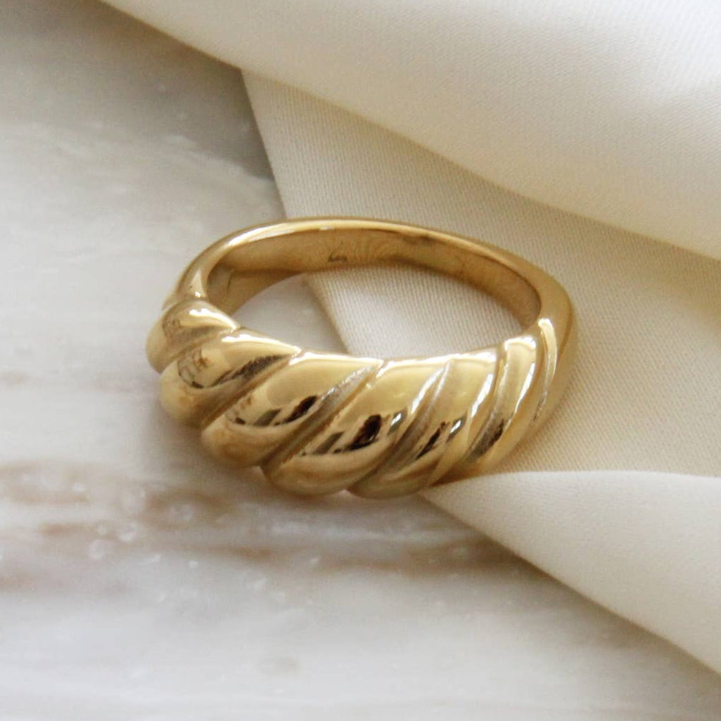 This beautiful Croissant Ring makes a perfect statement piece to be worn alone or layered with other rings.