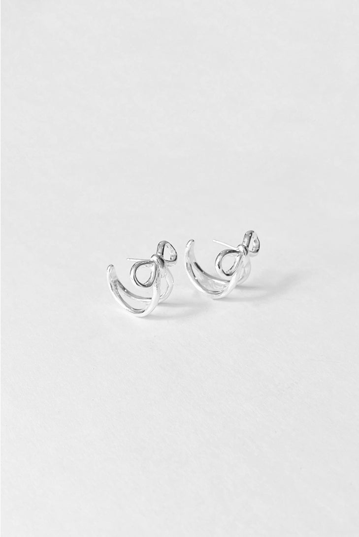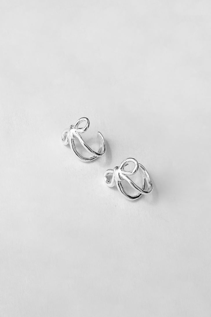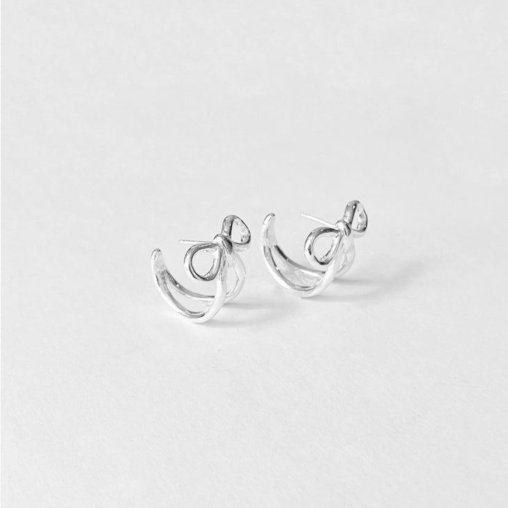 A bow but also a hoop, with two tails that separate and come together again to form the hoop. Get creative and playful with your style! These Maya Hoops offer a unique and stylish design that will surely catch some attention. Featuring a bow and two tails that can separate and come together, these hoops offer a fun and versatile way to enhance any outfit. You'll be making a statement with these hoops, while still staying on trend.