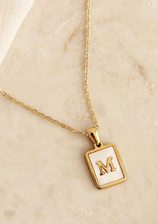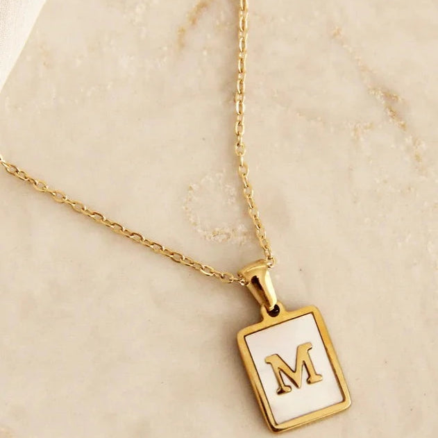 Mother of Pearl Initial Monogram Necklace
