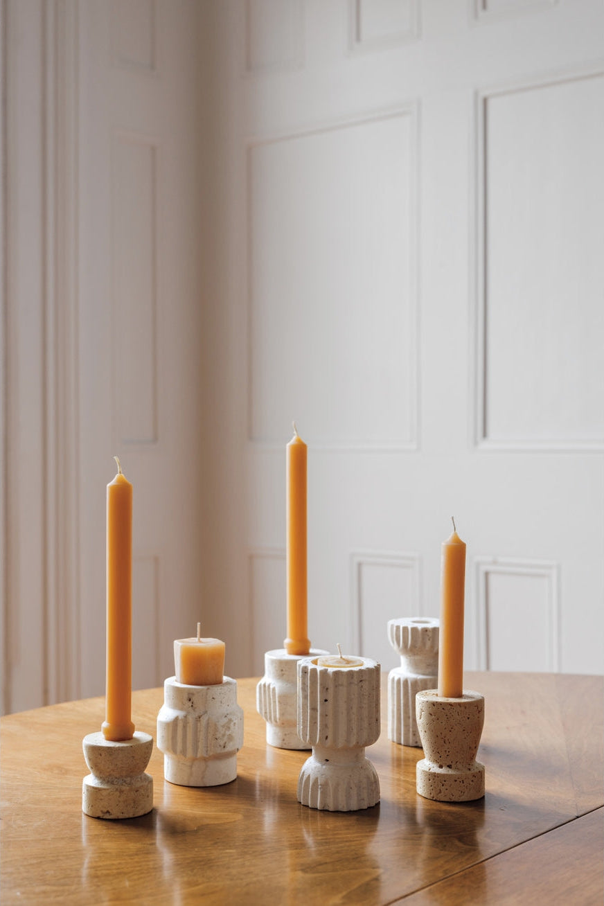 Elegant in shape, our handcarved travertine Petra candle holder is truly radiant. Stable, durable and eco-friendly.