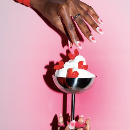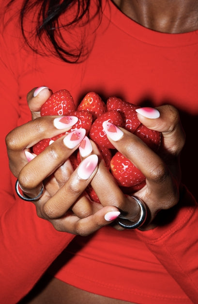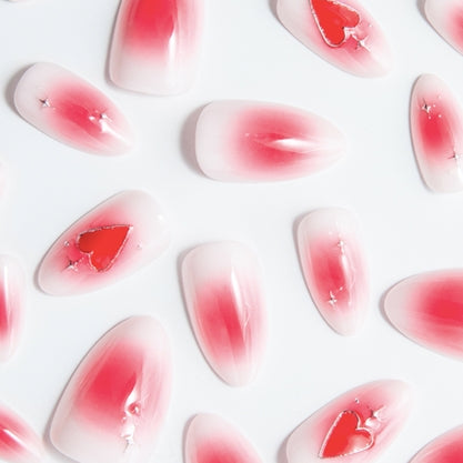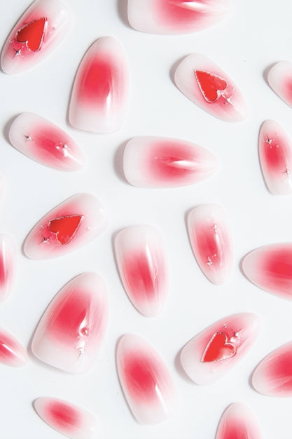 Get ready for hearts to skip a beat. Rome & Jules brings a dreamy aura design with a milky white base that fades into vibrant pink, adorned with edgy heart embellishments. Turns out, you and your mani are the true love story.