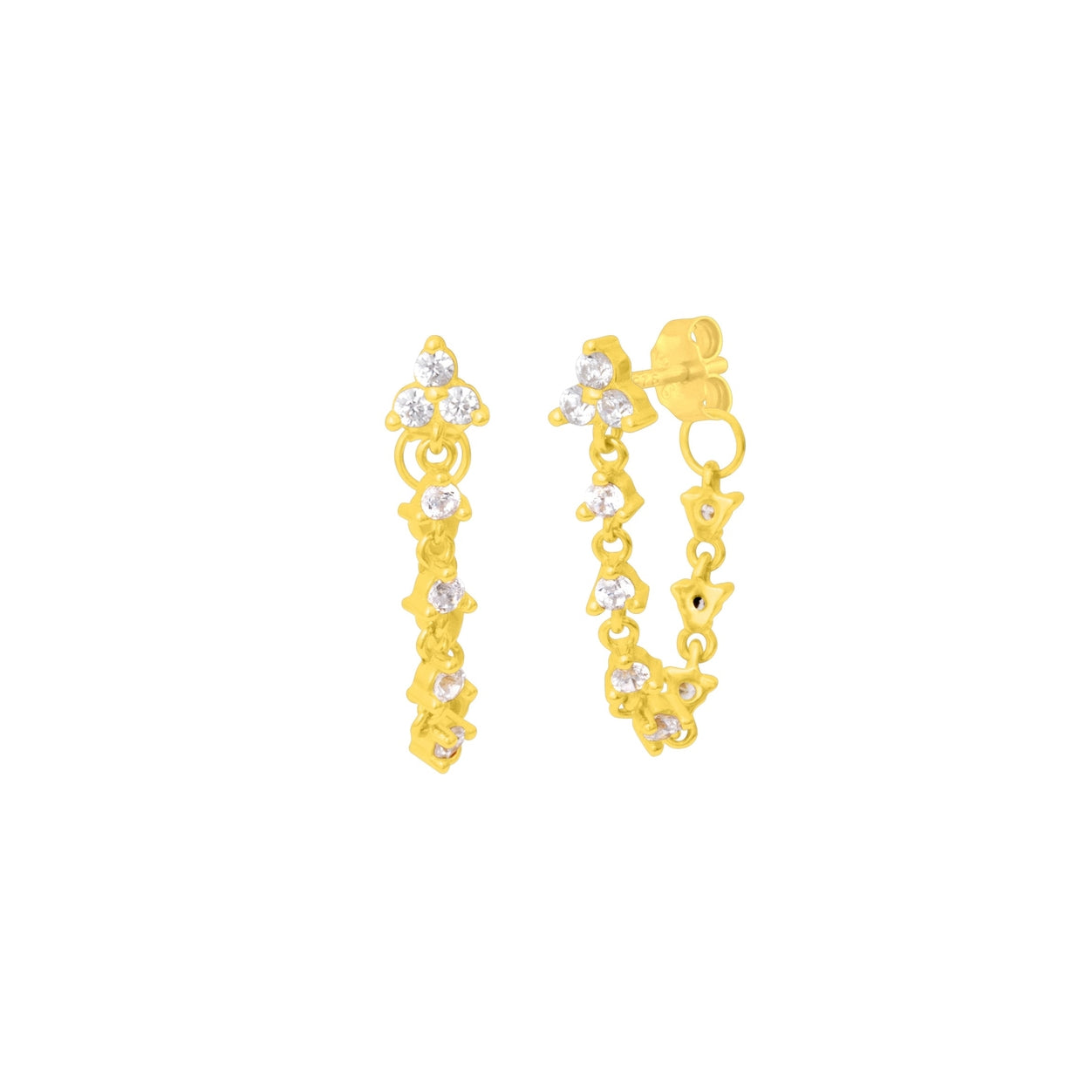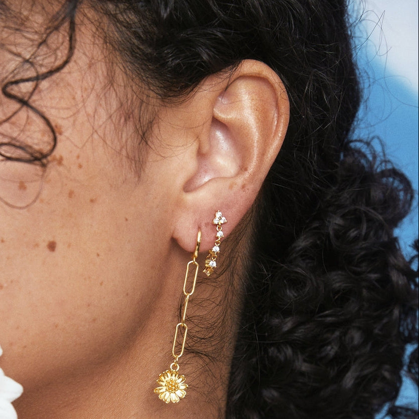 Add a touch of sparkle with the Etta Crystal Chain Earrings! Made from 18k gold plated 925 sterling silver, these playful earrings feature shimmering cubic zirconia stones that catch the light with every move. Lightweight and fun, they’re perfect for adding a little twinkle to your everyday style.
