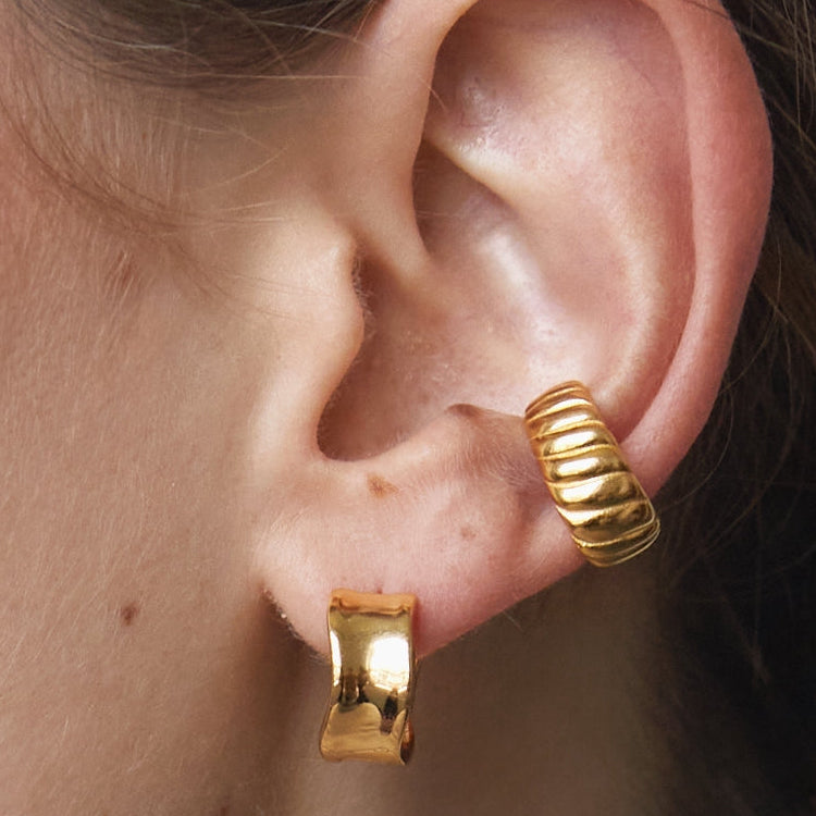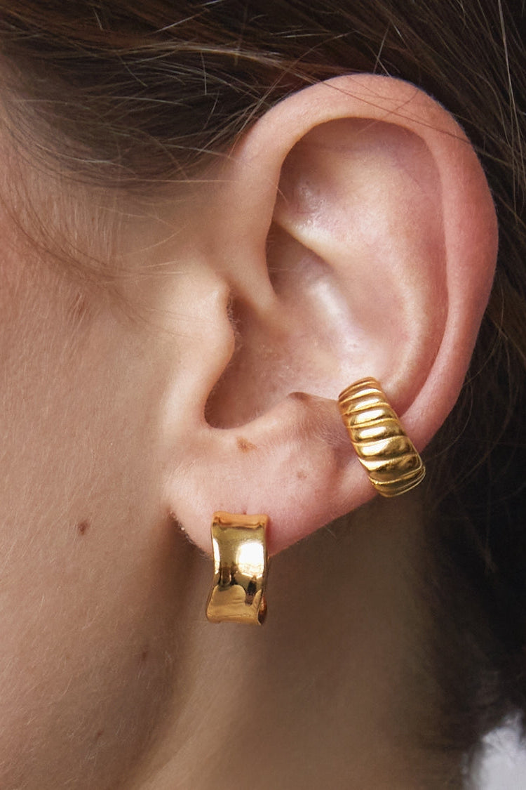 Add a touch of sparkle with these Farrah Wave Huggies Gold earrings. Crafted from 925 sterling silver and coated in radiant 18k gold plating, their 5mm width and 20mm height make them perfectly petite yet eye-catching. These playful waves hug your ears with a fun, modern vibe, adding effortless charm to any look.
