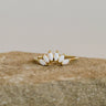 A crown of white opals, to open and strengthen the crown chakra, bringing about optimism, grace, and love to the wearer. Sized just right to cradle and stack from any of our ring assortment. We crafted our collection of rings to make every day a reminder of joy, self-love, and to shine from within.
