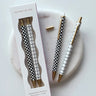 Our custom designed mechanical pencils feature scratch proof, wrap-around painted graphics, and are packaged in a cute, custom gift box. We finished them with metallic gold hardware to add a classic touch, and added a capped eraser to keep them as functional as beautiful! Our mechanical pencils are refillable and will fit any standard .7mm lead.
