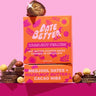Chewy Medjool dates are stuffed with creamy hazelnut filling speckled with crunchy cacao nibs. These dates are enrobed in organic, fair trade 85% dark chocolate that is free from any soy or emulsifiers. This is the healthy candy alternative that really delivers.