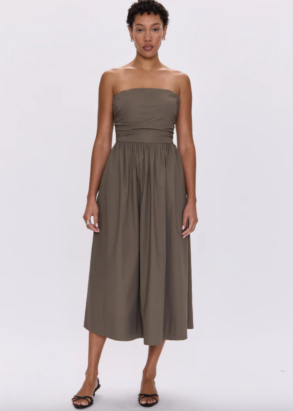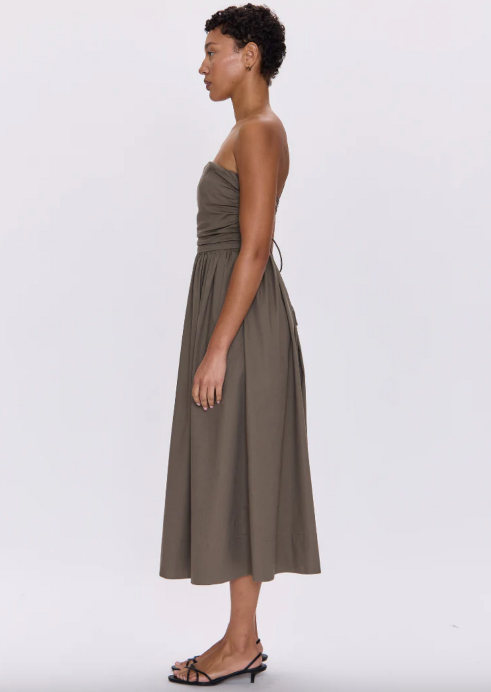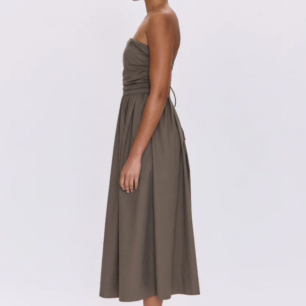 The Florence Midi Dress combines a flirty ruched bodice with a delightfully full skirt, all crafted from soft, stretch-kissed cotton for easy movement. The lace-up back adds a playful touch and lets you customize the fit perfectly. It’s the ideal dress for twirling through any occasion with effortless charm.