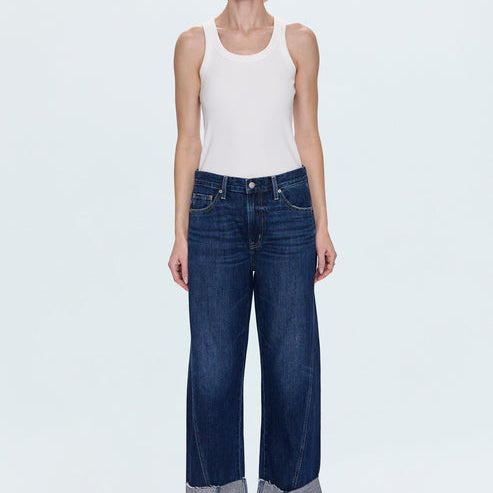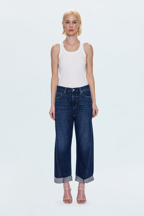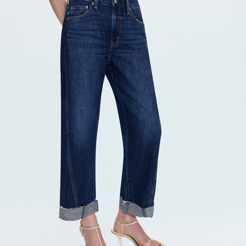 Your new go-to for effortless style. Kacey sits as a comfortable mid rise with an easy boyfriend fit and relaxed silhouette, finished with a 26 1/2" inseam. The stylish cuffed hem adds intentional finishing while thoughtful seaming details subtly elongate your figure. Crafted from lightweight rigid denim in Cultivate, an indigo wash that feels both versatile and refined.