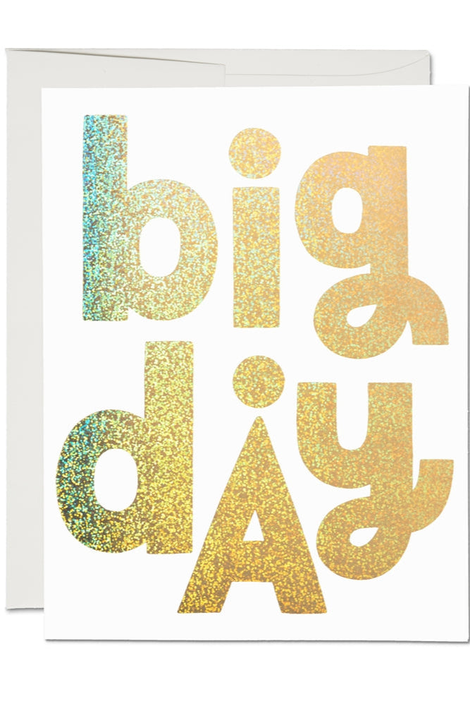 Celebrate any special occasion with our Big Day Congratulations Greeting Card! Made with 100lb heavyweight card stock, this card is offset printed and foil stamped for a high-quality finish. Measuring 5.5 x 4.25 inches, it features a playful illustration by Anke Weckmann and is printed on recycled paper by Red Cap Cards in Los Angeles. Blank inside for your personal message.