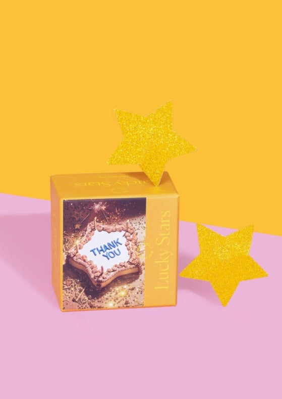 Thanking your lucky stars means your extra grateful — so what better way to say thanks than with an experiential greeting card. 70 pieces of sparkles and magic and a star-shaped cake says “thanks a million” and then some.