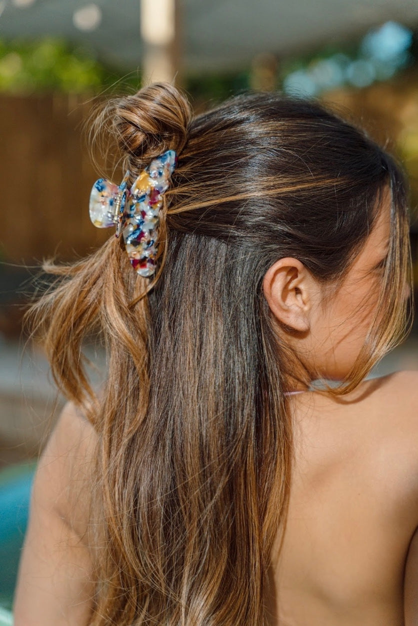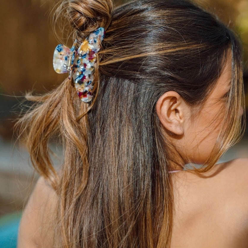 The fan-favorite is back! With its extra-strong hold and versatile design, the Luna Clip seamlessly takes you from casual mornings to elegant evenings. This effortless staple is available in Midnight, a deep, moody hue, and Pretty in Pink, a soft, romantic shade. Made from eco-friendly cellulose acetate for a luxurious feel and lasting durability. 4 inches long for all hair types.