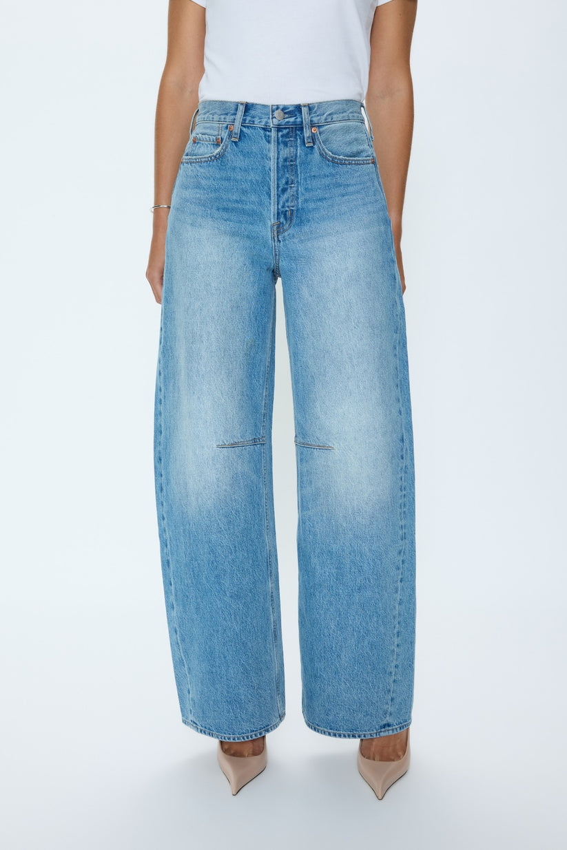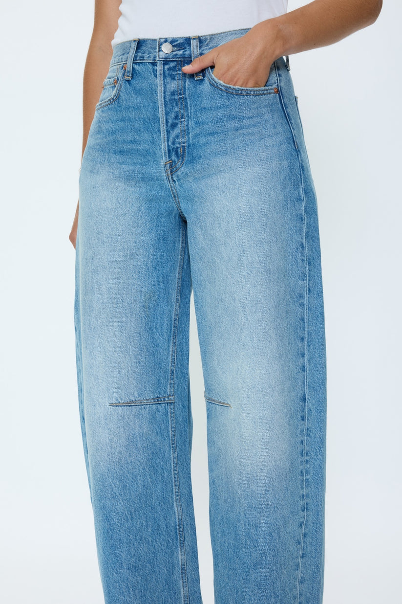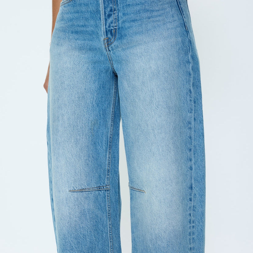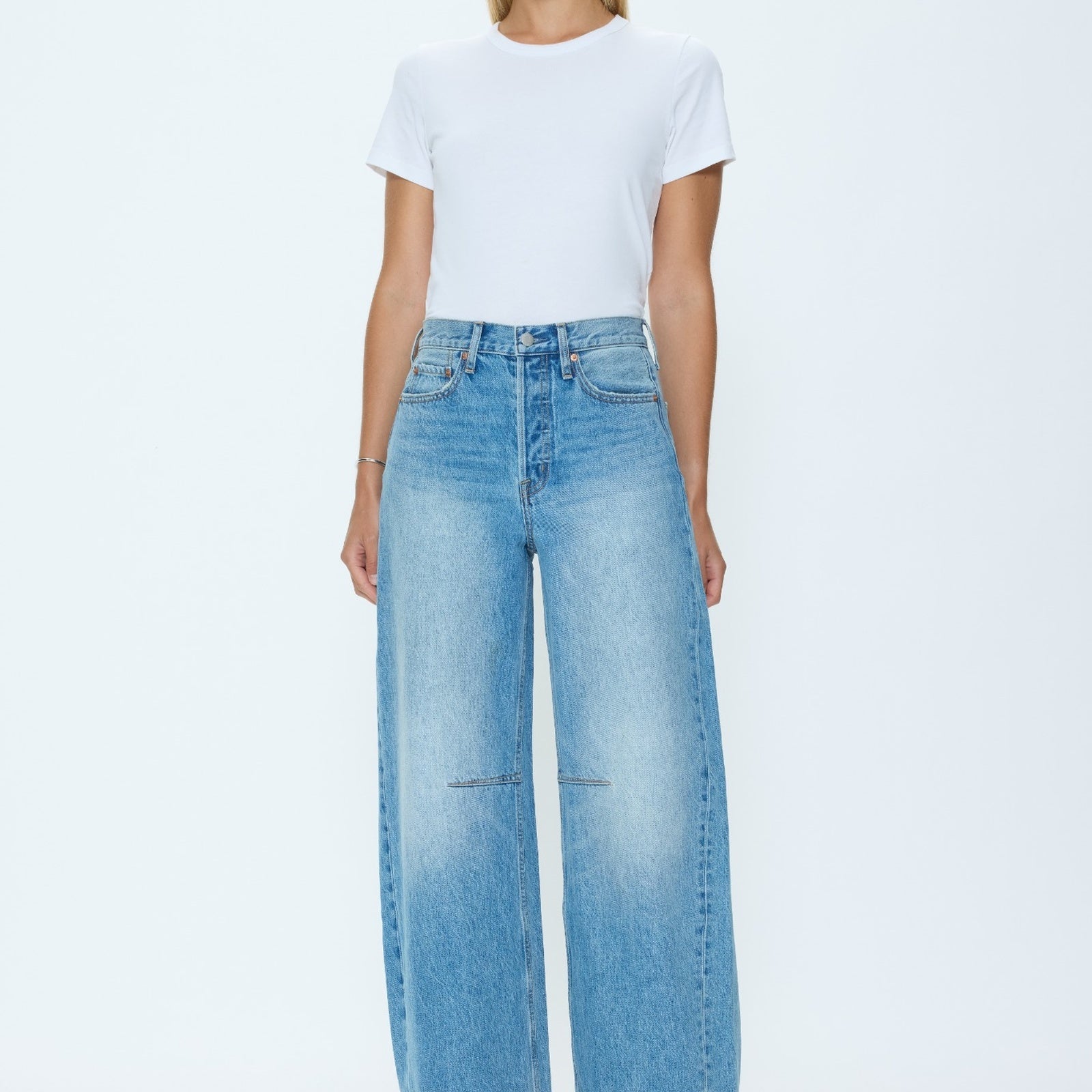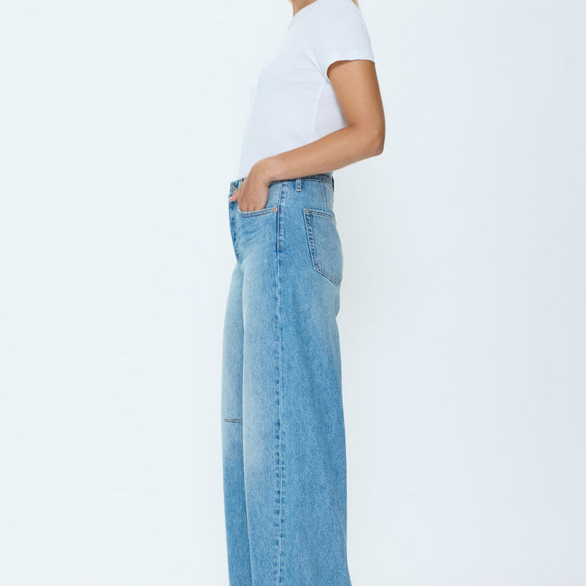 Elevate your denim collection with the Pistola Sydney High Rise Bowed Wide Leg Jean. This sophisticated silhouette features a commanding high rise that flatters the midsection, paired with a gracefully bowed wide leg that creates an effortlessly polished look. The fabric showcases a refined fading detail above the knees, adding subtle dimension and contemporary character. Perfect for those who appreciate tailored, statement-making denim that transitions seamlessly from refined casual to elevated everyday wear.