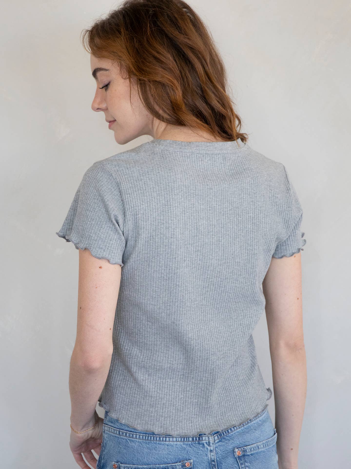 The Hailie Top from Things Between is a delightful addition to your casual wear. This soft, ribbed short sleeve shirt features a lettuce hem, adding a touch of femininity to your look. Made from a comfortable blend of 95% cotton and 5% spandex, this top provides a fit that doesn't compromise on style. Designed with everyday ease in mind, this top encapsulates the brand's ethos of finding joy in the little moments. It's the perfect blend of comfort and cool, just like all Things Between.