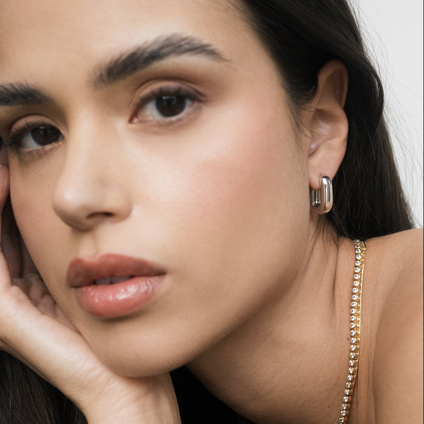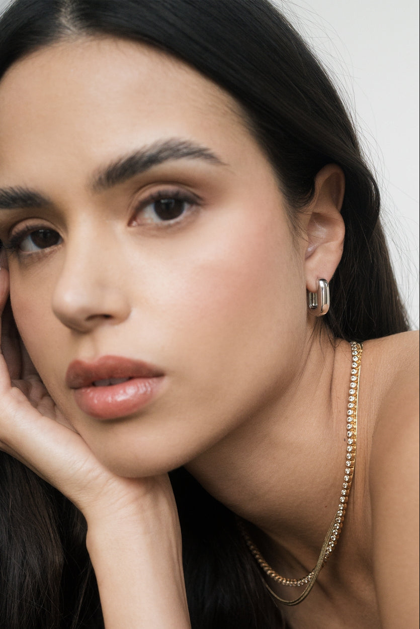 Our Elly Petite Hoops aren't your average hoops. Puffy, elongated, and surprisingly lightweight, they're the perfect balance of bold and comfortable.