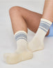 The newest crew height sock adorned with retro stripes for a cool and classic look. Featuring bold retro stripes and a timeless crew height, this style brings effortless edge to every studio session or street stroll. Designed for all-day comfort and support—with grip, of course.